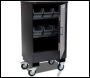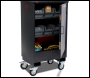 Fittingstor, Mobile Fittings Cabinet. Designed to secure & organise copper fittings and cable alongside the tools & equipment. Heavy duty sheet steel construction with adjustable shelving and removable plastic compartments. Fitted with twin 5 lever deadlocks and serial numbered for replacement keys. Supplied on 4 x 6''castors to enable it to be easily manoeuvred