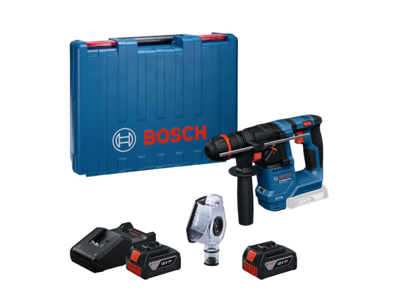 332.40 2026-02-15Tired of changing tools to drill into different materials? The Bosch GBH 18V-18 X Professional Rotary Hammer is just the tool for you. Compact yet mighty, this cordless hammer comes with ONECHUCK, a single chuck that fits SDS-plus, cylindrical and hex drill bits for a wide range of applications, including concrete, wood, and metal. KickBack Control ensures that the motor immediately stops when the drill gets jammed in material, prevent common kickback injuries. Vibration Control dampens vibrations to reduce hand-arm numbness while working. This lightweight cordless hammer even delivers full performance on an 18V 2.0 Ah battery, making extreme power feel lighter in your hands. A single battery charge is enough to drill up to 50 holes in concrete , thanks to its robust brushless motor with continuous power output and constant speed.