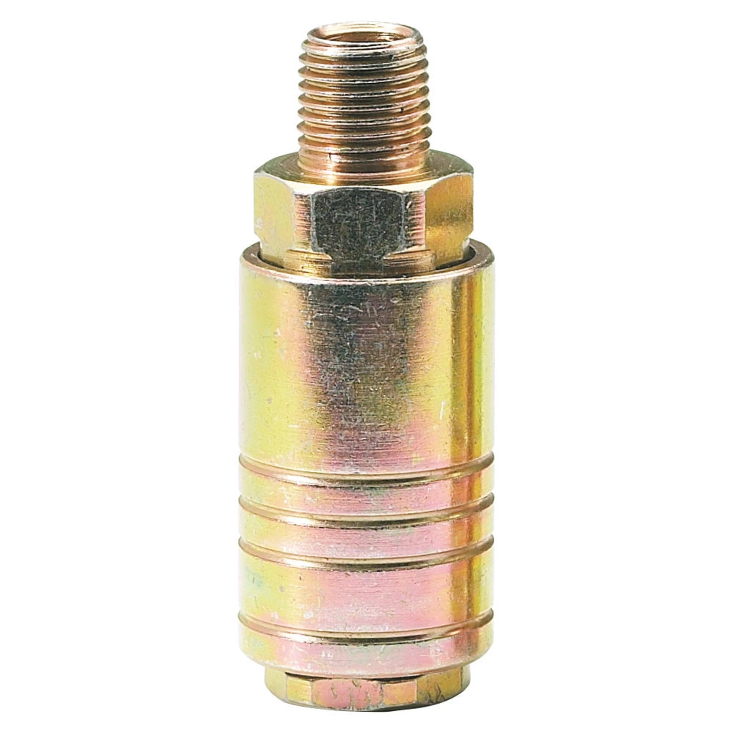 11.16 2026-03-26The Clarke 1/4" BSP Snap Male Body is made from mild steel with brass plating, offering a robust product, that stands up to daily use. The body has a quick release spring loaded collar to secure air fittings with ease, without the constant need to use spanners to change fittings.