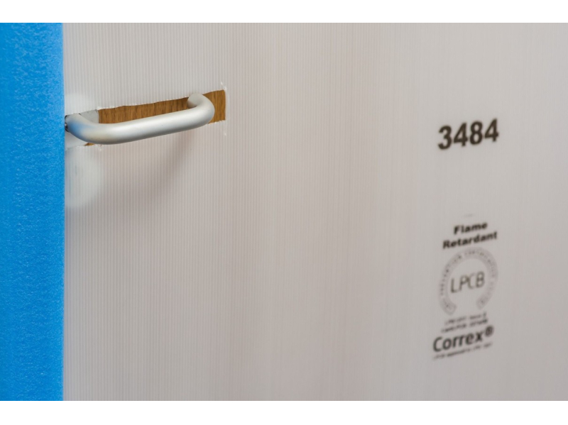 FLAME RETARDANT PROTECTION BOARD - FIRE RETARDANT LPS1207 CERTIFIED PROTECTION SHEETING Flame Retardant Protection Board is manufactured from strong corrugated polypropylene to provide long lasting protection for windows, doors, stairs, walls and floors. Lightweight and extremely strong, the plastic sheets are tear, puncture and impact-resistant. They can be cut, curved and creased to fit any surface offering complete surface protection for a variety of applications during refurbishment, building and construction projects. Flame resistant protection board is similar to twinwall plastic sheeting and CORREX® board, and is ideal for the same uses – ie. Protection for floors, doors and other surfaces. Sheet size: 2m x 1m x 2mm sheet (ideal for the protection of doors). Weight: 250gsm Colour: White/Translucent Benefits: Provides efficient protection from knocks, scratches and spills Ideal size for the protection of doors or narrow walkways Lightweight and flexible Quick and easy to cut, crease and curve Durable and reusable 100% waterproof Personalised logo printing available Flame retardant to LPS1207. Certificate number 227a/01 Resistant to chemicals 100% recyclable Please note that protection board products will be delivered folded when purchased in quantities of less than 300. This protection board has been developed specifically to provide a temporary protection solution for floors and surfaces. Any other use may not result in the desired outcome and we cannot guarantee satisfaction for other applications. For orders of pallet quantities (above 300 sheets), it is the customer's responsibility to supply and use suitable offloading equipment upon delivery.