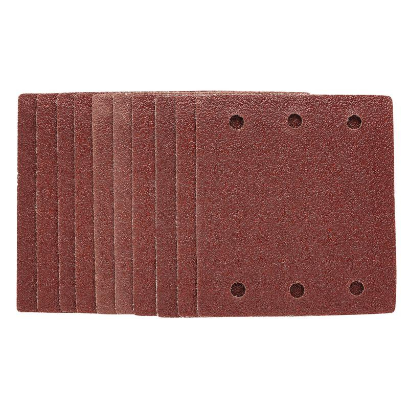 4.50 2025-12-21Pack of ten Aluminium oxide 100 x 110mm hook and loop backed abrasive sanding sheet, with 6 x 8mm pre - punched holes. For use on power sanding machines.