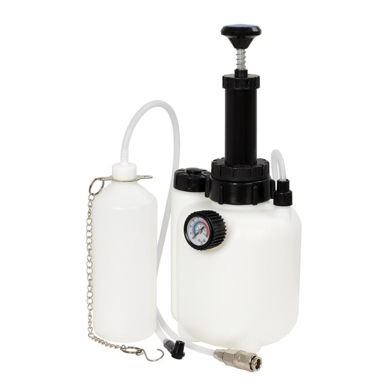 64.76 2026-01-12This pump-action manual brake and clutch bleeder is perfect for one-person operation on vehicles that cannot be bled using suction methods. The reservoir holds 3L of hydraulic fluid, and a 1L waste oil bottle ensures enough brake fluid to service the entire brake system in one go. The visual pressure gauge allows for monitoring the pressure, enabling safe use. It comes with a wrench for easily unscrewing the cap to refill the brake fluid.