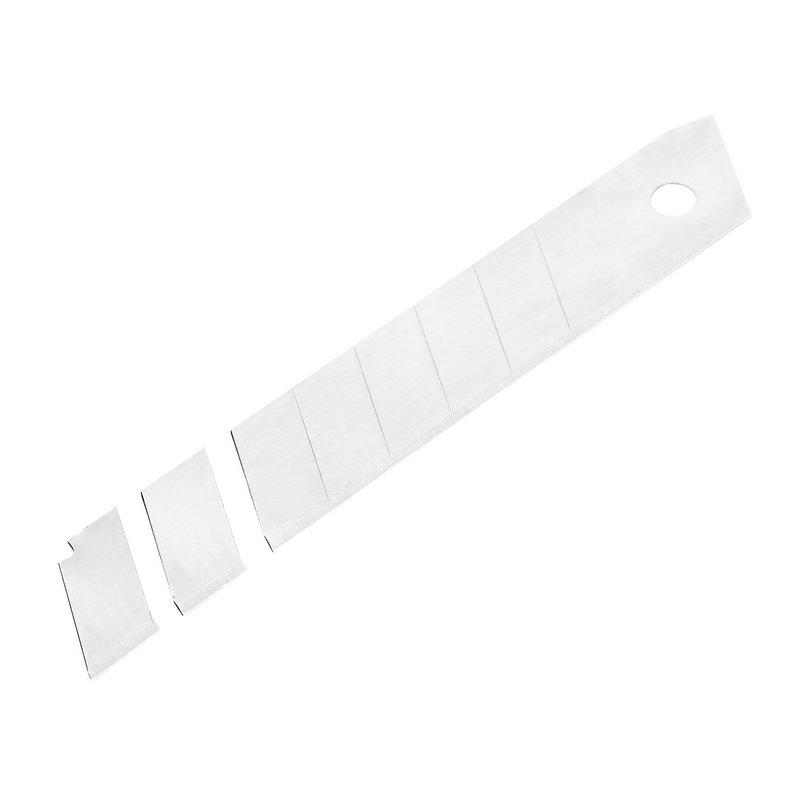 5.22 2026-03-27Pack of 10 general purpose 18mm snap-off segment knife blades. There are 12 snap-off pieces. Made from high carbon steel and suitable for trade use. Blade thickness 0.5mm. Supplied inside a sturdy shatter resistant plastic case.