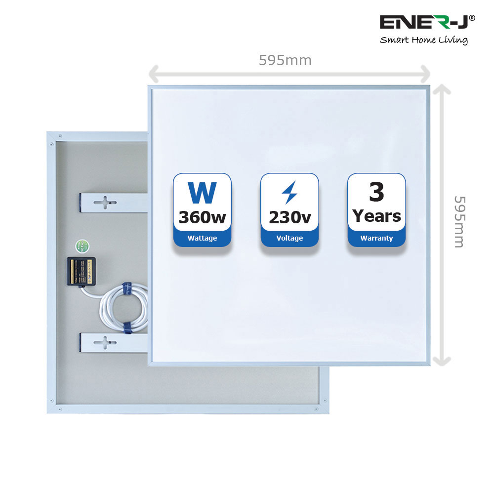 1 x ENER-J Infrared Heating Panel (60x60cms 360W)1 x Plug-in WiFi Thermostat (Max 3680W)1 x User Manual