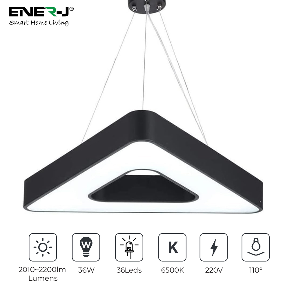 45.96 2025-12-07Bring a bold, modern aesthetic to your interiors with the 36W Hollow Triangle Pendant Light, designed to stand out with its striking triangular silhouette. Ideal for both residential and commercial spaces, this geometric LED hanging light features a sleek black finish, bright 2010~2200 lumens output, and an adjustable hanging system to fit any ceiling height. A perfect blend of form and function, it’s crafted from durable iron and PC, offering long-lasting performance and style.