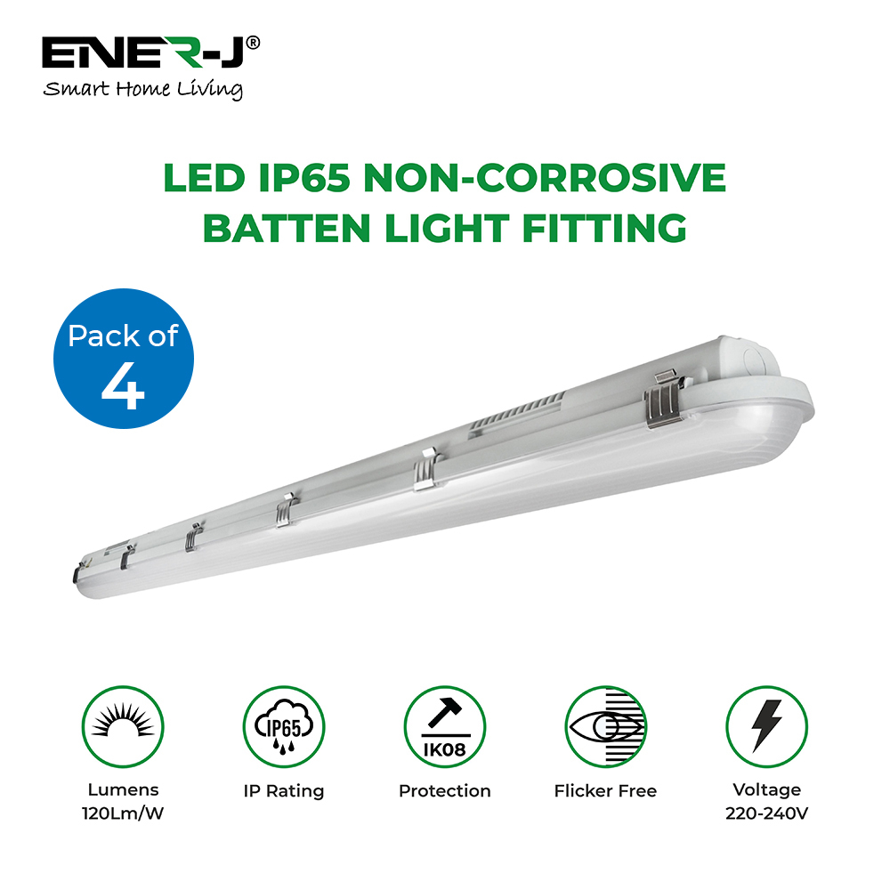 98.10 2025-12-07Illuminate your outdoor spaces with our LED Non Corrosive IP65 Batten Fitting Light. This 120cms, 40W, 6000K in a pack of 4 units, ultra-bright light provides 4800 lumens of illumination, making it perfect for parking lots, garages, factories, warehouses, and more. With an IP65 rating, it's waterproof and dustproof, ensuring long-lasting performance even in challenging environments. Enjoy instant start-up and up to 20000 hours of operation, while saving up to 80% electricity compared to fluorescent lamps.