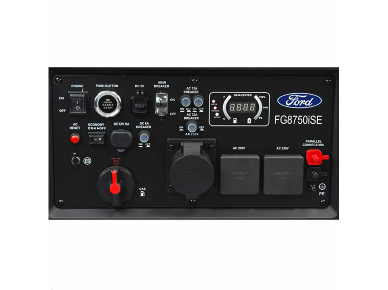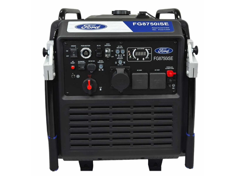1469.99 2026-05-18The Ford FG8750iSE is the largest in the Ford inverter range, with a maximum output of 8.2kW. Compact and powerful, it is designed for leisure and domestic use, able to cover a large number of appliances either at home or out on the road. Boasting a large 8kW continuous output, the generator is ideal to take on sensitive work while allowing heavier equipment to be run off it simultaneously. The FG8750iSE uses a range of sockets to provide several connection options. The 32A 230V socket allows for larger appliances to run from the generator and the two 13A 230V domestic sockets allow for direct connection of household appliances. With a 12V socket for battery charging and USB sockets for your smart tech, you’ll always be set when you need a quick bit of power on the go.