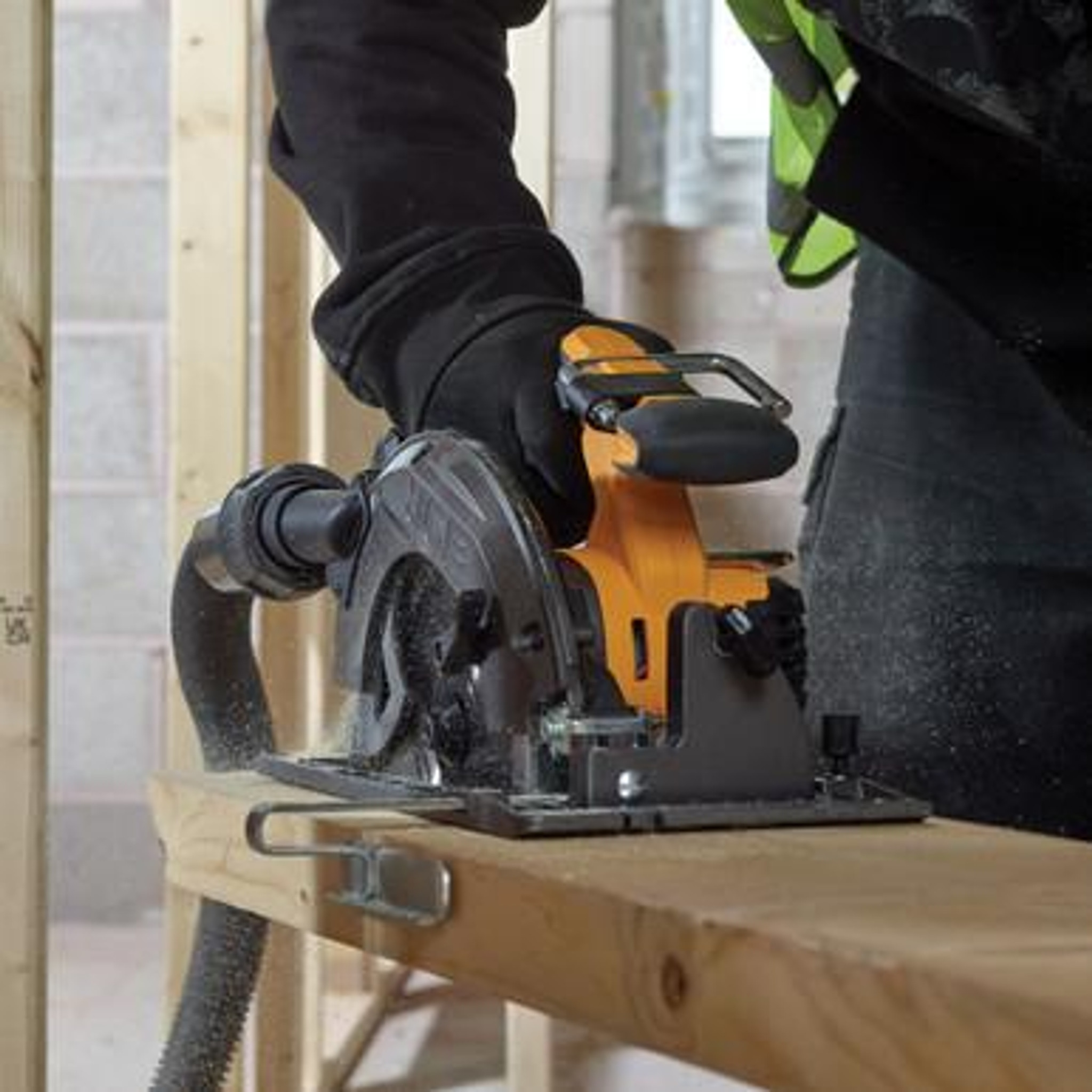 Delivering 5,500 RPM cutting speed and a full 65mm depth at 0°, and 43mm depth at 45° this heavy-duty circle saw powers through timber, sheet materials, and multi-surface boards cleanly and with a precise cut and finish.. Whether you’re cutting floor joists, fence panels, or roof battens—this cordless circular saw gets it done fast, clean, and without compromise.