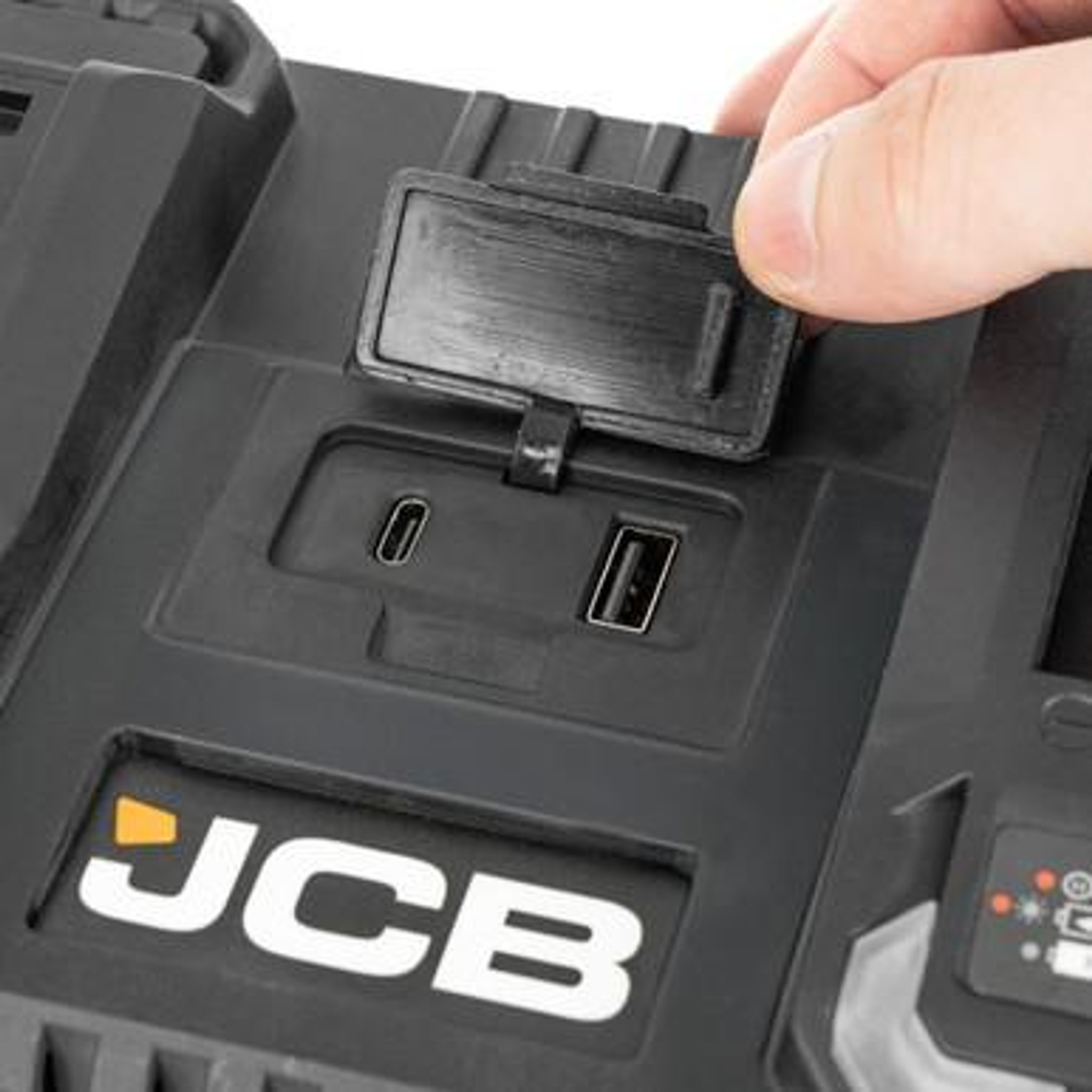 40.00 2025-12-08Charge-up your JCB 18V Lithium-ion batteries with the JCB next-generation 4.5A Dual Port Fast Charger. Built to deliver super fast and efficient charging for two batteries at the same time and rate, as well as an additional USB and USB Type C outlet to charge small electronics such as mobiles and laptops.