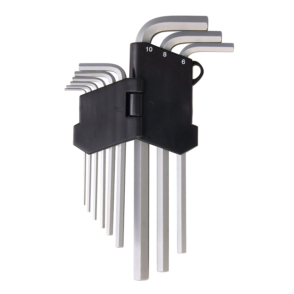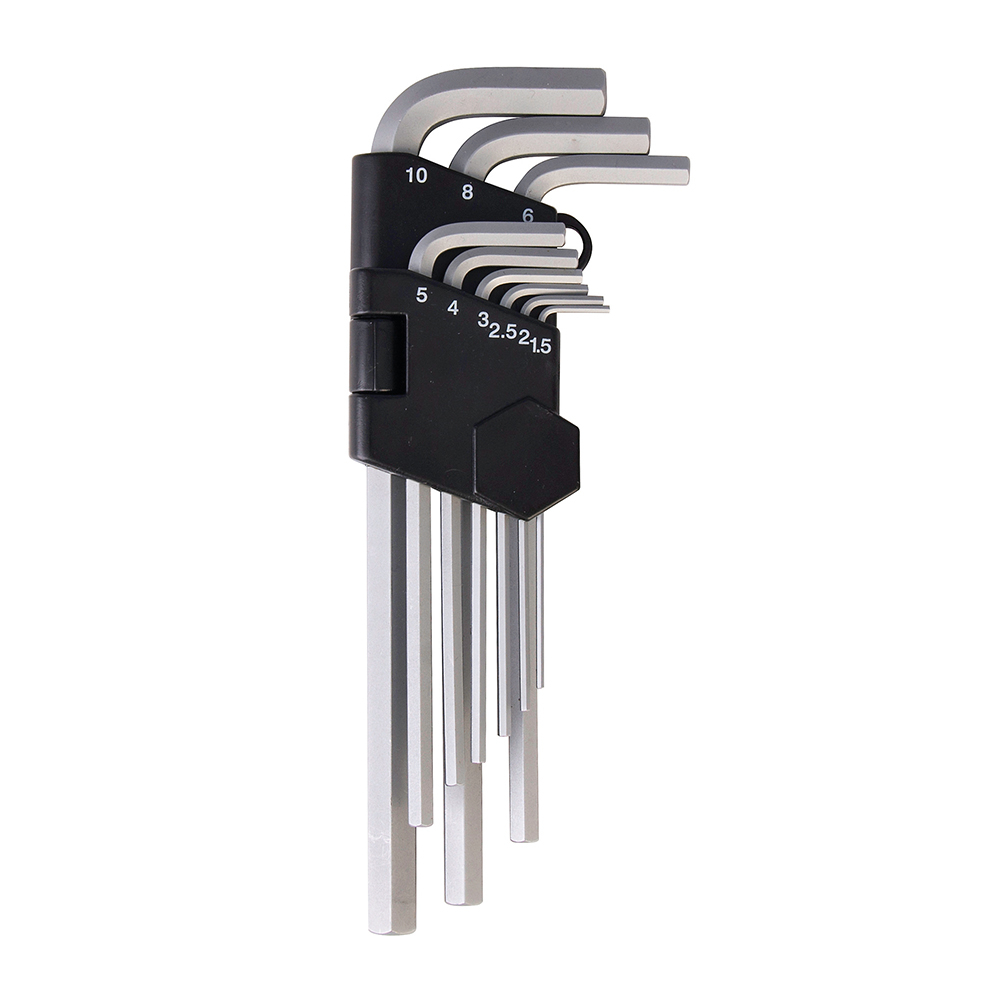 10.81 2025-12-01High grade hardened steel with satin plated finish. Ball end provides 15° angled access. Manufactured to DIN911. Includes 1.5, 2, 2.5, 3, 4, 5, 6, 8 and 10mm.