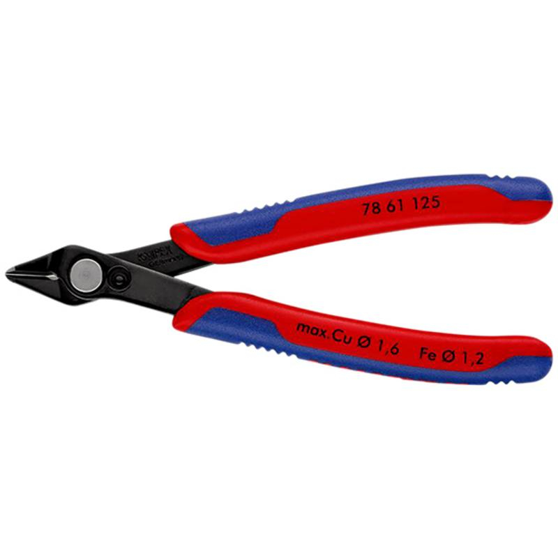 26.40 2026-04-26Professional Quality, manufactured from special tool steel with narrow angled jaws. Smoothly ground burnished head with nonbevelled precision ground cutting edges induction hardened to 64HRC. Zero play lap joint with steel rivet. Will cut diode wire. Cushion-grip spring-loaded handles with limiter. Display packed.