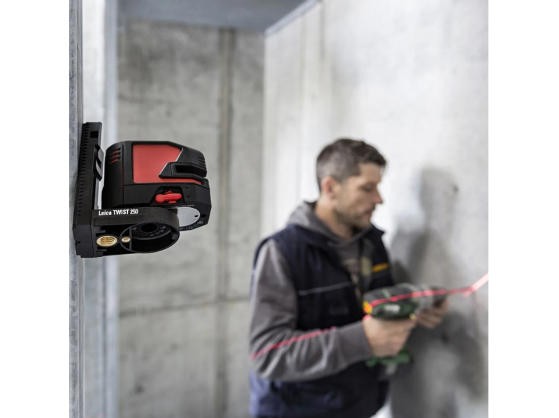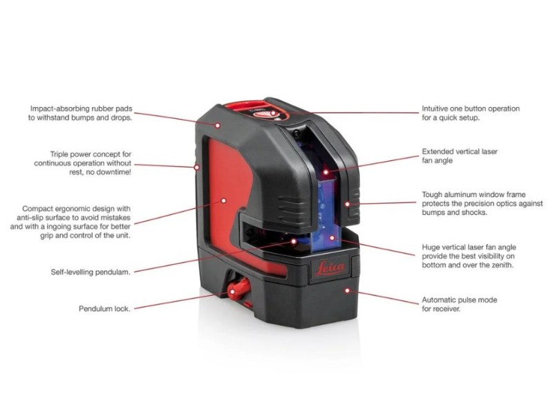 The Leica Lino is self-levelling and automatically adjusts if it is slightly out of level (up to ± 4°). If the tilt is outside the ± 4° limit, the instrument activates a visual flashing alert to prevent errors.