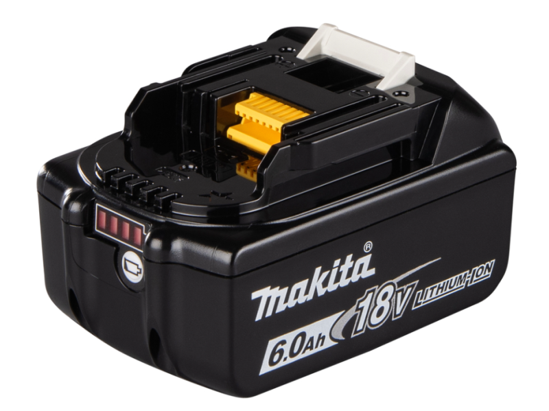 Li-ion battery with 6.0 Ah capacity and a charge level indicator. Powerful general-use battery for 18V Makita LXT® tools. Ideal for tools with a high power consumption. Charge time approximately 55 minutes with a rapid charger.