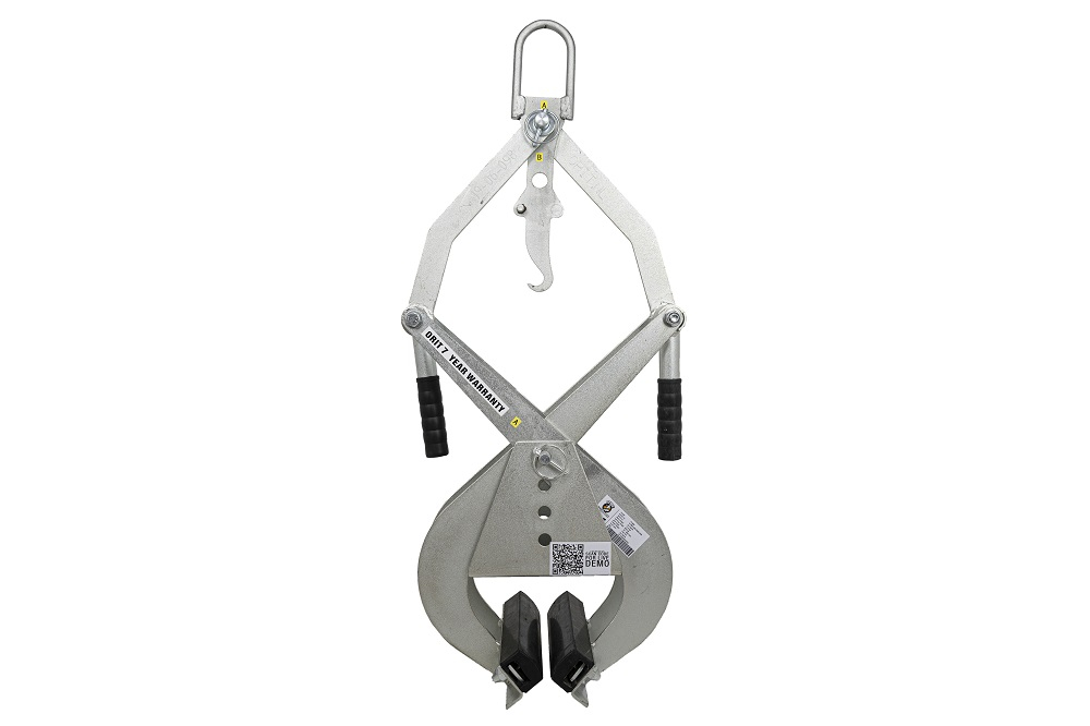 Clever-Grip is a mechanical grab suitable for handling parallel, plane and non-conical concrete elements, such as border stones, slabs, block steps and kerb stones. The compact and lightweight grip can be attached to a carrier (loading crane, mini-excavator etc.) by means of hoisting belts or chains. Thus just one person is able to operate the grab mechanically. The grab comes with two handles and thus is also suitable for a two-man manual operation. The triangle guarantees a perfect grip.