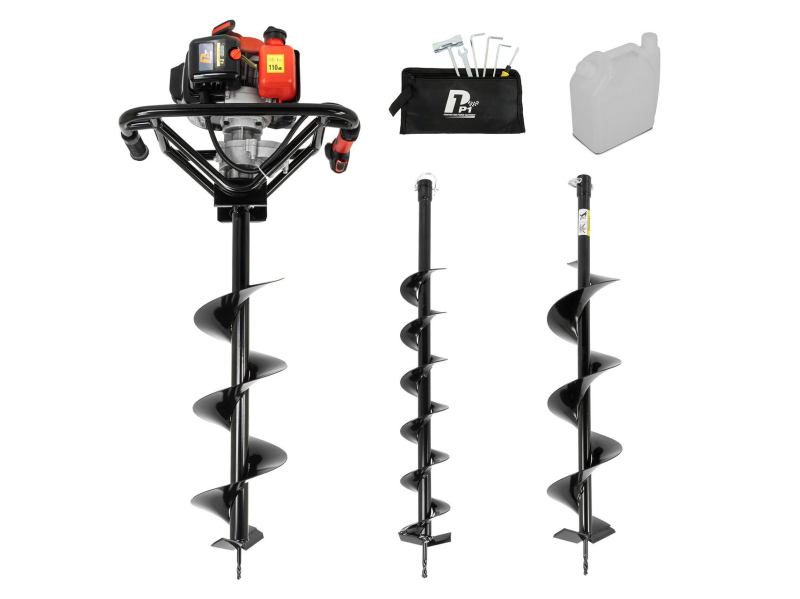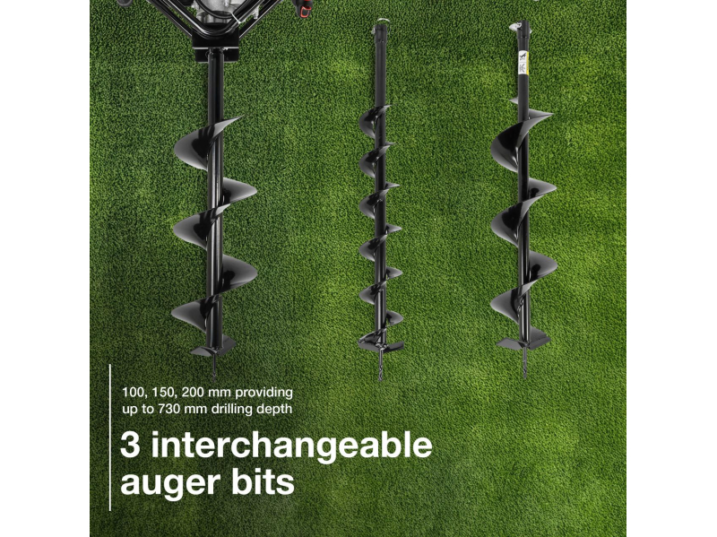Supplied with three quick-release steel auger bits (100 mm, 150 mm, and 200 mm), the P1-EA560 can drill holes up to 730 mm deep.