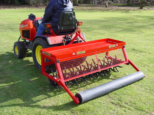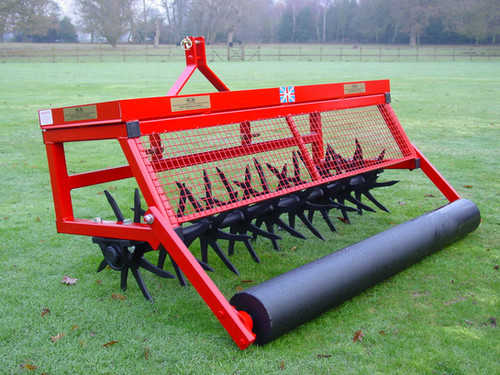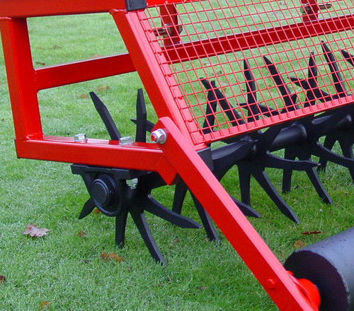 The unit features nine heavy-duty aeration discs, mounted on a durable 50mm stainless steel axle with bearings, which bolt securely to the D System Mounted Carrier Frame (Ref: DMF). Under suitable conditions, the tines can achieve penetration depths of up to 180mm (7"), making this attachment ideal for high-performance turf care on sports fields, paddocks, racecourses, and amenity grounds.