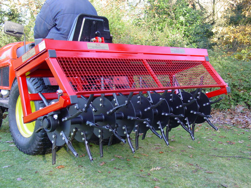 Each tine removes a core approximately 75mm (3") deep, allowing vital air, water, and nutrients to reach the root zone. This process significantly improves soil structure, reduces compaction, and supports healthier, more resilient grass growth. When lawn sand is applied afterward, the holes fill naturally, further enhancing the turf's ability to absorb moisture and nutrients.