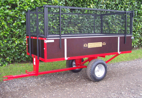 The SCH GWTS15 Two-Wheeled Timber-Bodied Tipping Trailer is a robust and versatile trailer designed for garden tractors, ATVs, and a variety of hauling tasks. With a generous 760kg (15cwt) carrying capacity, it can efficiently handle large and heavy loads.