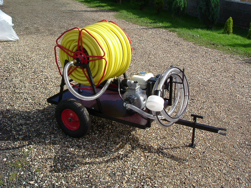 It is ideal for ground watering of young trees, shrubs, and other plantings, and can also function as a first-aid fire pump in emergencies.