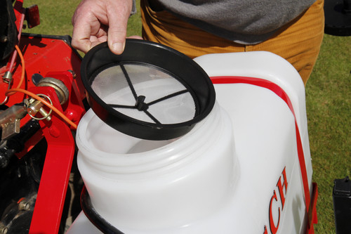 Large tank lid simplifies filling and cleaning while preventing accidental spills that could damage grass or soil.