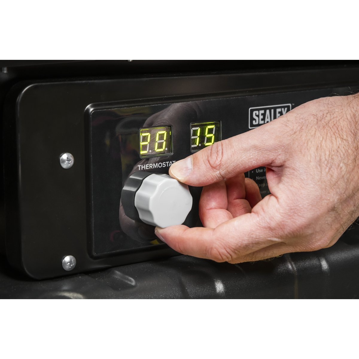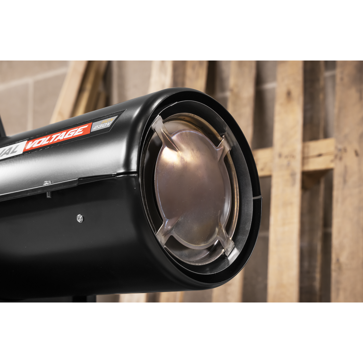 383.95 2026-01-24Dual voltage space warmer with 50,000Btu/hr (15kW) Heat output. The voltage can be easily changed using either 230V or 110V cables and plugs supplied. Clean burning and proven pump system can operate with either kerosene or diesel. Large 22L tank with an 13hr usage on a single tank of fuel it is ideal for use in workshops, garages or factories. With stainless steel combustion chamber and dual LED display makes it easy to keep the temperature of any workspace controlled. Fitted with safety cut-outs and fuel gauge, plus a sturdy handle and heavy-duty wheels for easy manoeuvrability.