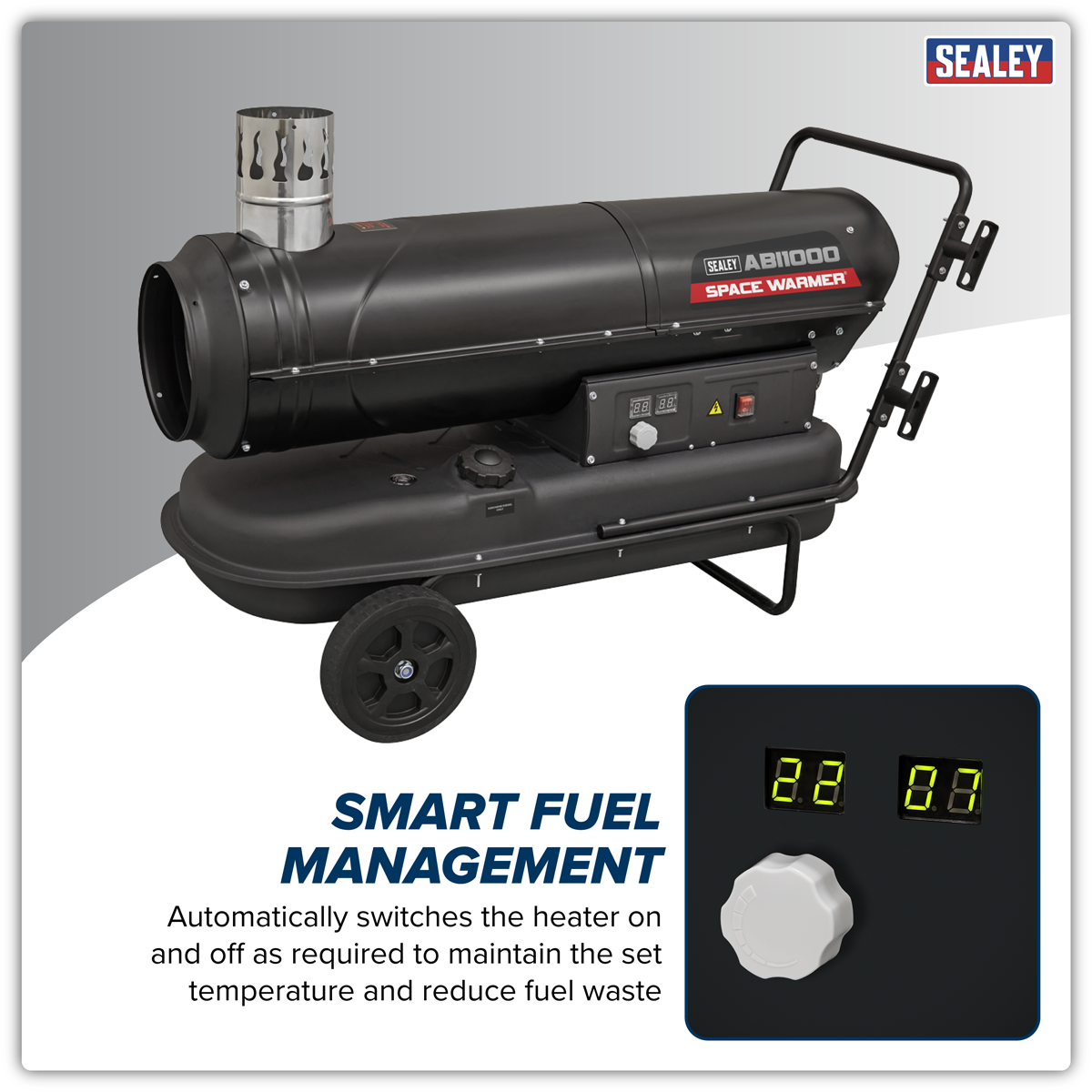 887.95 2026-03-26Indirect fired heaters are sophisticated, reliable, and highly efficient heaters. Ideal for places where there’s limited ventilation, or where people are present, as they deliver huge volumes of clean, dry, fume free heat safely and economically. The Sealey 102,000Btu/hr Indirect Space Warmer® has a 30kW heat output ideal for heating marquees, events, halls, workshops, warehouses, construction sites and more. Combustion by-products are exhausted out of the top of the heater through the flue. Ducting is available, Model No. ABI1000AK1 sold separately. With a thermostat control it allows you to set a required ambient temperature and maintain it. The thermostat will switch the heater on and off as required to maintain the set ambient temperature, this saves fuel and adds extra convenience. The indirect heater includes a stainless-steel combustion chamber with fan cooling, built-in flame sensor, Danfoss pump, electronic flame control and electronic control panel which ensures reliable performance. Fitted with a flame-out device which cuts the fuel supply when the flame is inadvertently extinguished or if the fuel has run out, ensuring maximum safety. Suitable for use with Kerosene or Diesel. Large wheels and a handle make the heater easy to transport, position and re-position where required on site.