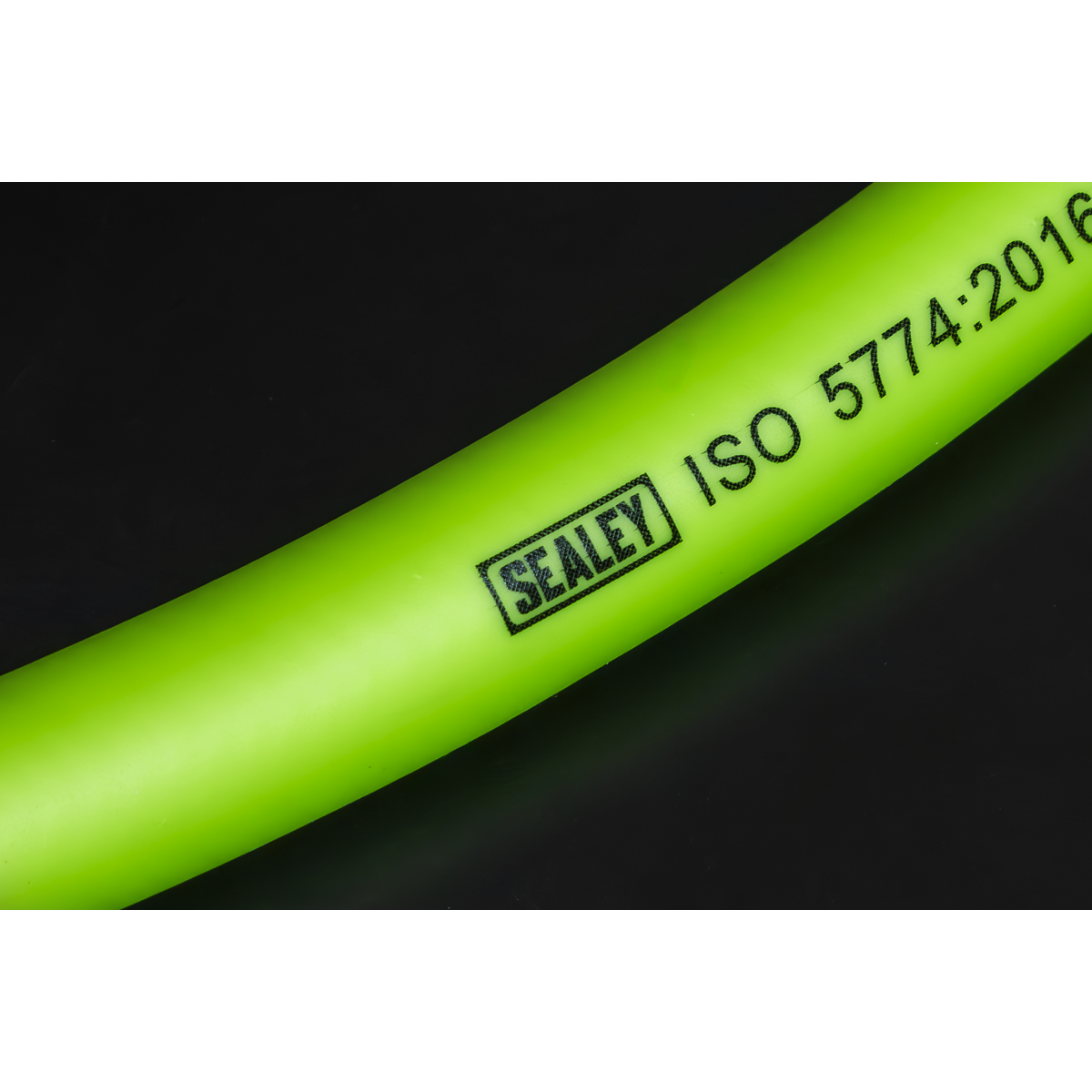25.16 2025-12-12PVC and rubber blend air hose that provides greater flexibility, even in cold temperatures as low as -40°C. High visibility for added safety around the workplace. No memory recoil effect allows the airline to lay flat. Manufactured in accordance with EN ISO 5774. Features high grade TPR (Thermoplastic Rubber) inner tube and outer coating, offering lightweight, superior bend radius and durability. Features bend restrictors which increases the life of the hose. Fitted with 1/4"BSP male connectors. Silicone-free for use in the bodyshop.