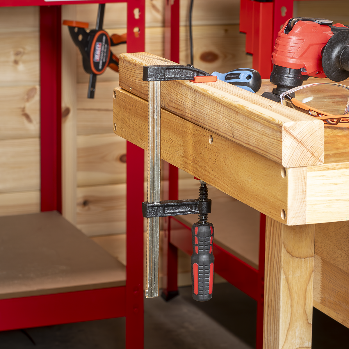 6.50 2026-01-09Made from carbon steel with cast-iron jaws and nickel plated for corrosion protection. It is capable of evenly distributing up to 170kg of sustained clamping force. The quick adjustment handle has a comfort grip for easier operation. The soft protective plastic jaw guards prevent damage to work surfaces. Ideal for woodworking and metalworking. Hold pieces together while screwing or glueing. Secure parts for welding or bolting together.