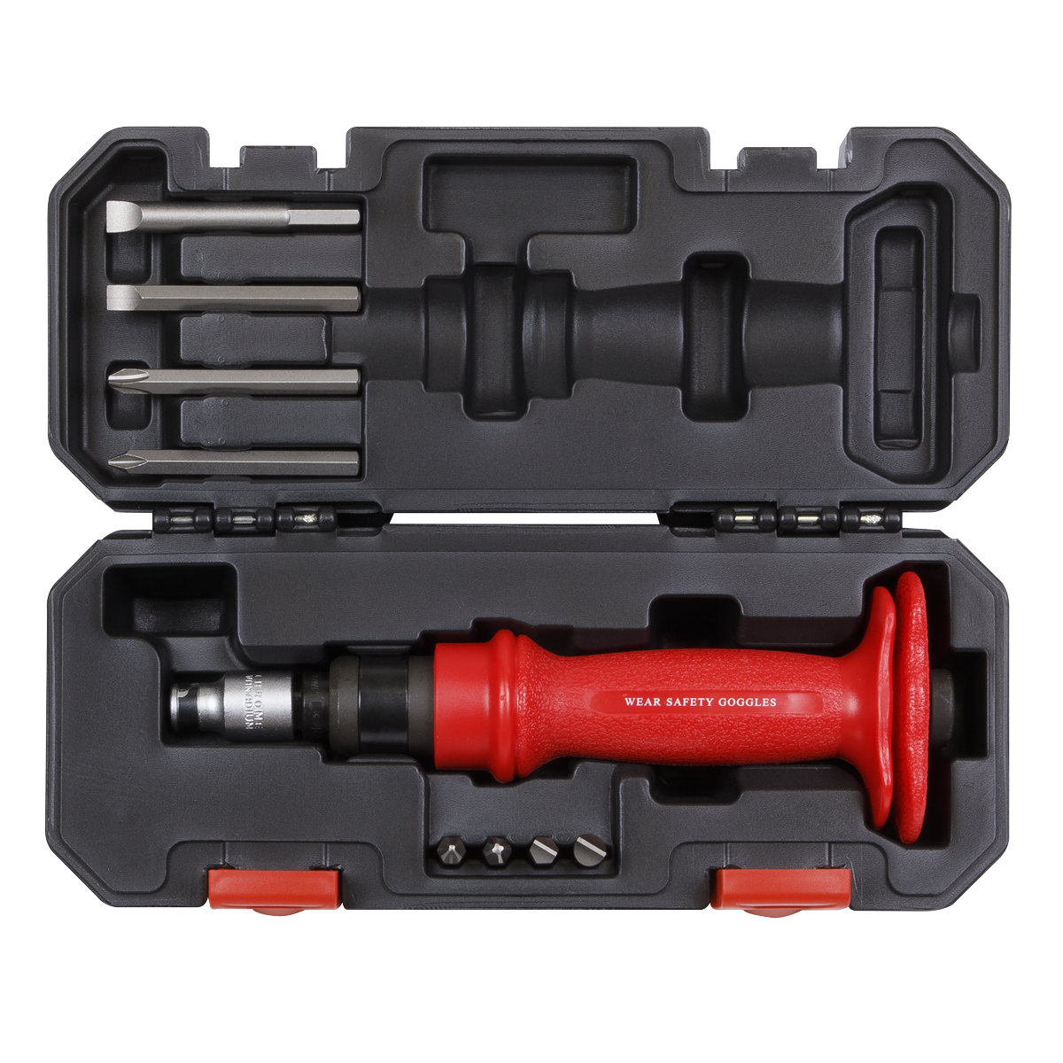 36.58 2026-01-18Heavy-duty 1/2"Sq drive impact driver with composite handle and integral knuckle guard. Features twist-reverse for operation in either direction. Supplied with 8pc Chrome Vanadium steel driver bit set and 8mm hex drive adaptor. Supplied in storage case.