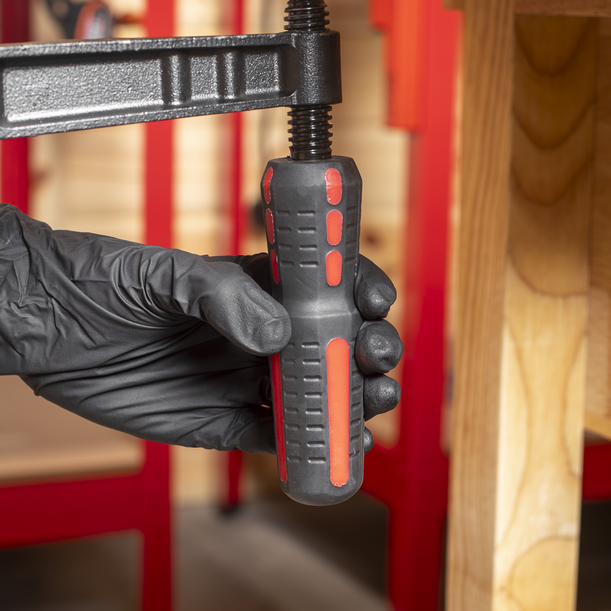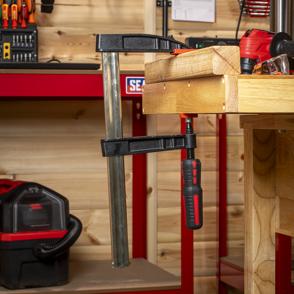 11.96 2025-12-20Made from carbon steel with cast-iron jaws and nickel plated for corrosion protection. It is capable of evenly distributing up to 450kg of sustained clamping force. The quick adjustment handle has a comfort grip for easier operation. The soft protective plastic jaw guards prevent damage to work surfaces. Ideal for woodworking and metalworking. Hold pieces together while screwing or glueing. Secure parts for welding or bolting together.