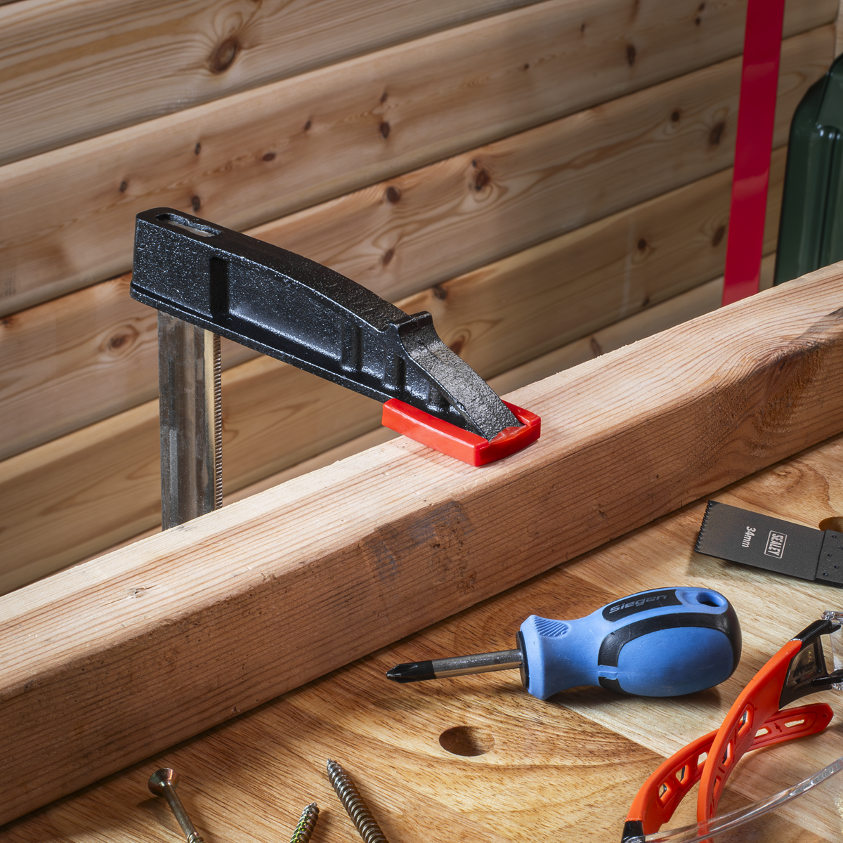 11.96 2026-01-09Made from carbon steel with cast-iron jaws and nickel plated for corrosion protection. It is capable of evenly distributing up to 450kg of sustained clamping force. The quick adjustment handle has a comfort grip for easier operation. The soft protective plastic jaw guards prevent damage to work surfaces. Ideal for woodworking and metalworking. Hold pieces together while screwing or glueing. Secure parts for welding or bolting together.