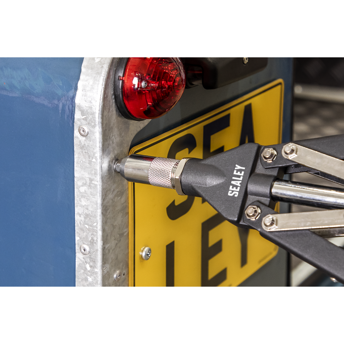 Instructions for the Sealey AK3981 Heavy-Duty Long-Arm Riveter with Collection Bowl