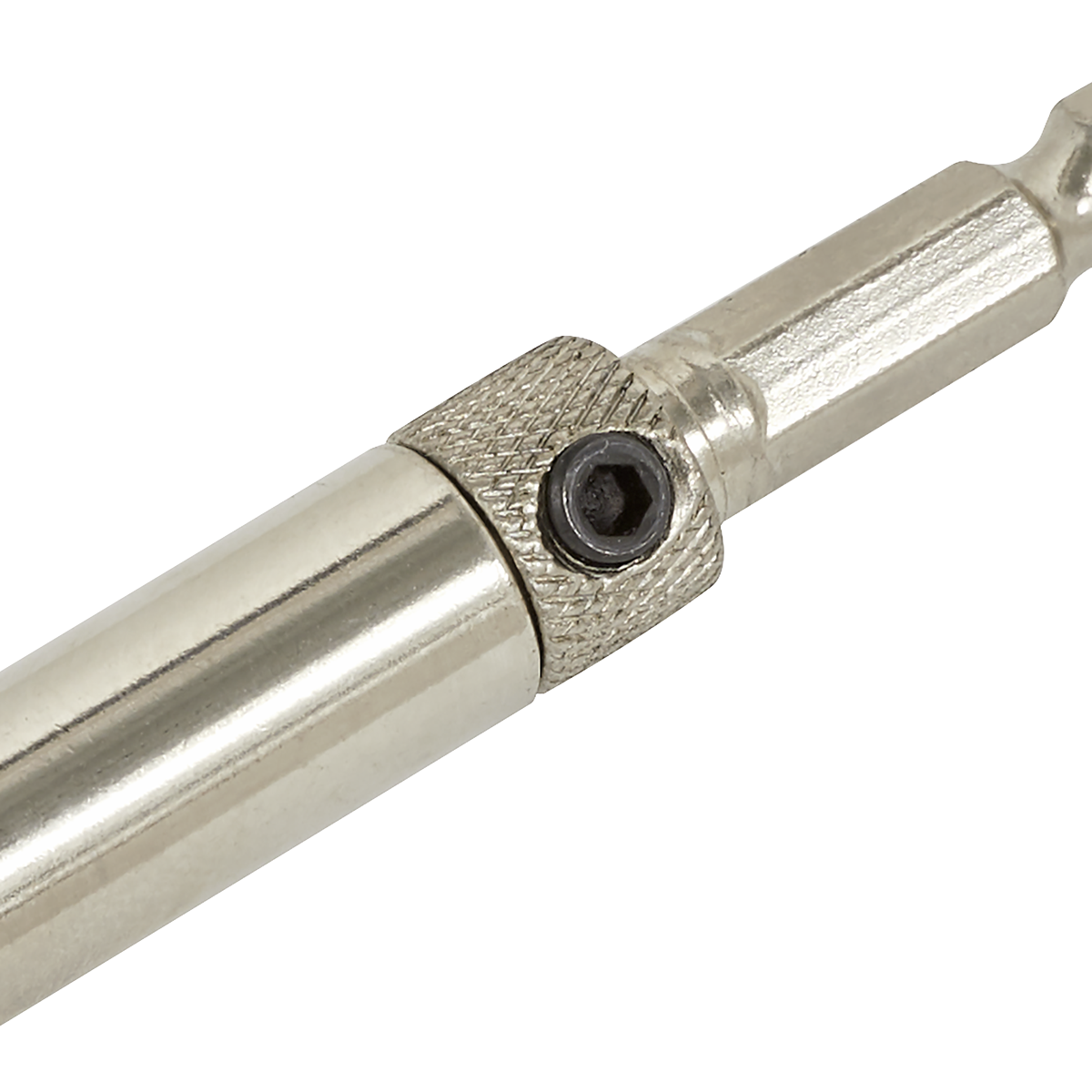 11.48 2026-03-26Use hinge as template by drilling directly through the holes. Spring-loaded sleeve has a chamfered tip to position centrally in hole. 1/4"Hex shank.