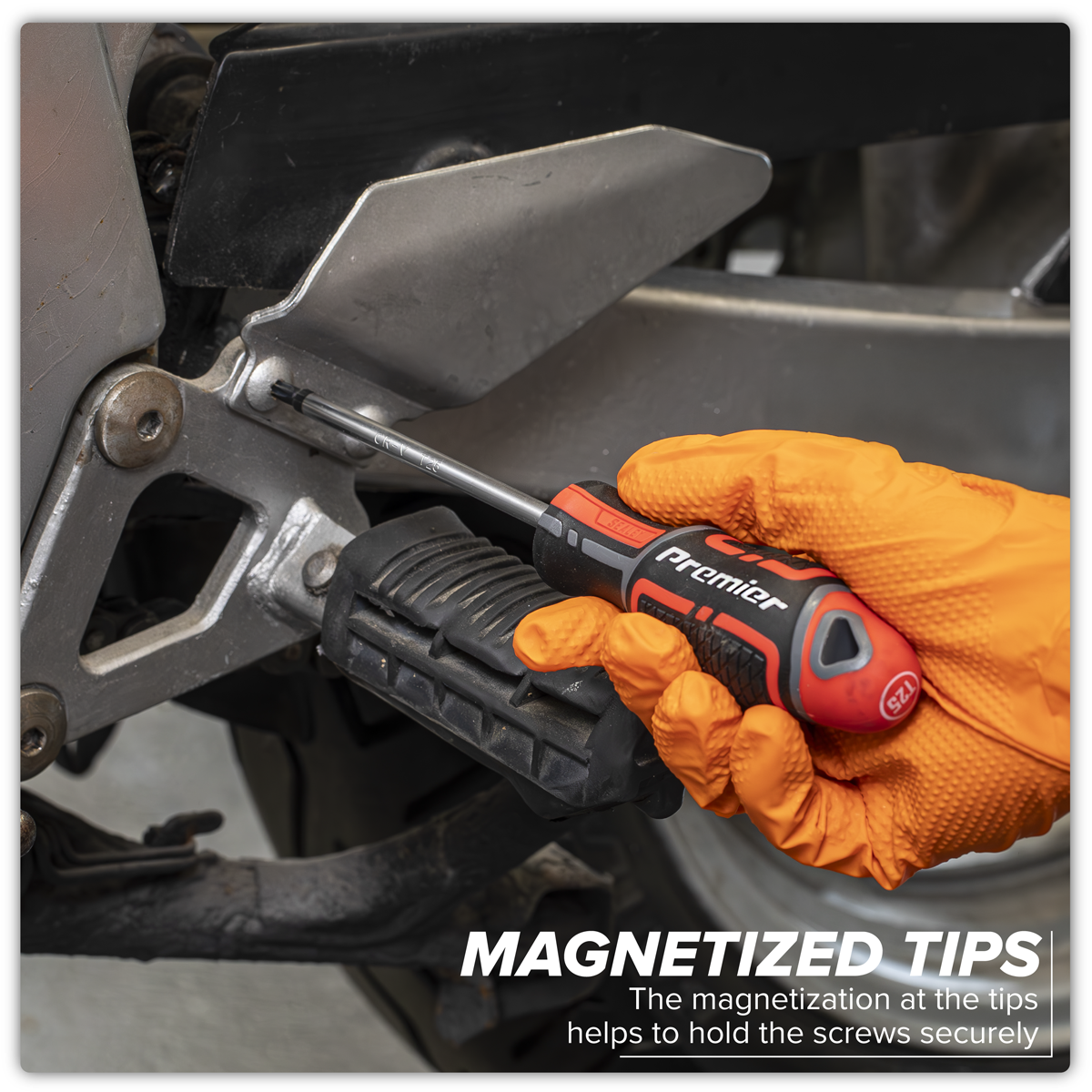 21.58 2026-01-24High quality Chrome Vanadium satin finished shafts with shot blasted and magnetized tips. Ergonomic polypropylene and TPV rubber soft grip handles maximize power transfer from hand to fixing. Includes hanging holes for alternative storage.