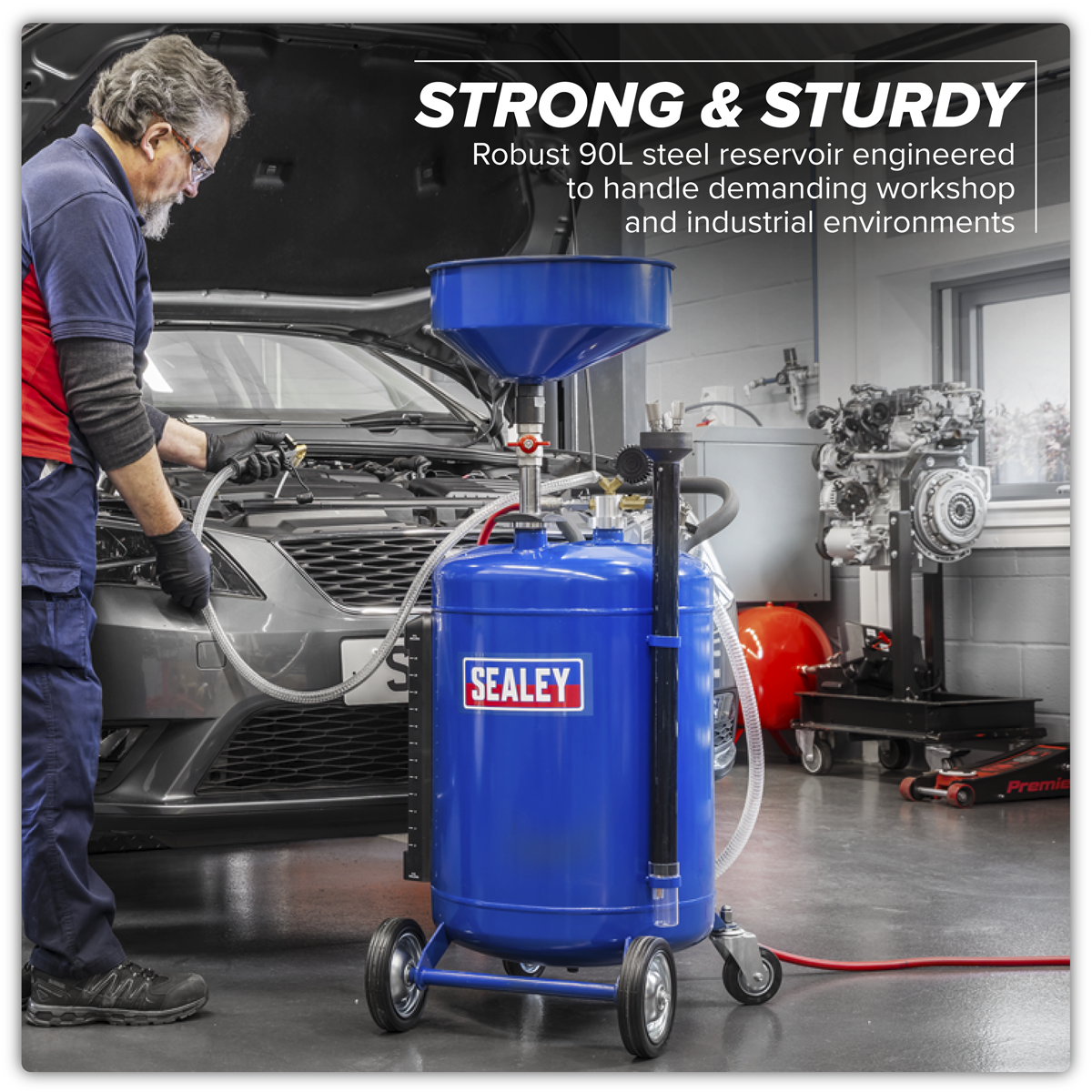 Instructions for the Sealey AK459DX Air Discharge Mobile Oil Drainer with Probes 90L