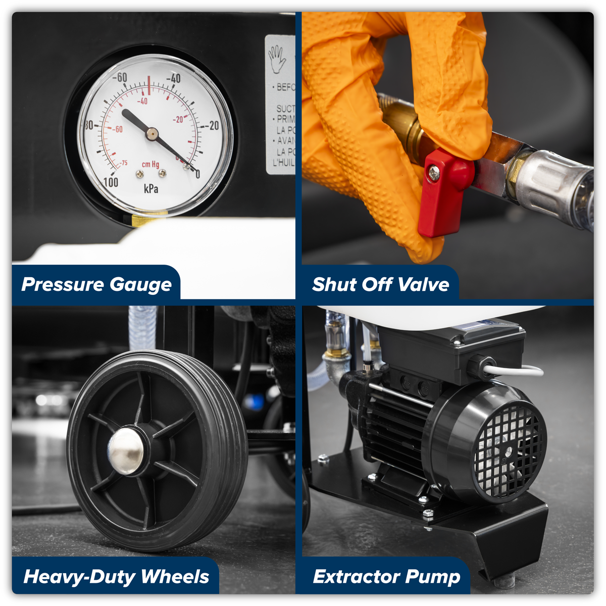 884.95 2025-11-29Mobile oil drainer designed to extract oil via the dipstick tube. 12L Capacity tank allows easy collection and safe disposal of waste oil. Fitted with wheels for manoeuvring around the workshop with ease, even when full. Designed for use in small workshops where clean, spill-free oil removal from vehicles is required. No need to lift the vehicle or to remove the sump plug. Probes insert into the dipstick port, allowing the oil to be sucked from the engine sump. Suction hose of 1.7m fitted before the probes are attached and integrated suction gauge to monitor the pump. Supplied with 1x Ø8mm x 650mm rigid probe, 1x Ø5mm x 650mm rigid probe, 1x Ø6mm x 800mm semi-rigid probe, 1x Ø8mm x 800mm semi-rigid probe, and 1x probe suitable for VW Golf. Also suitable for Mercedes.