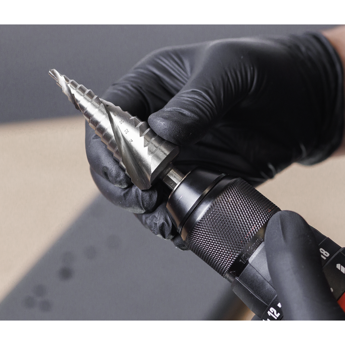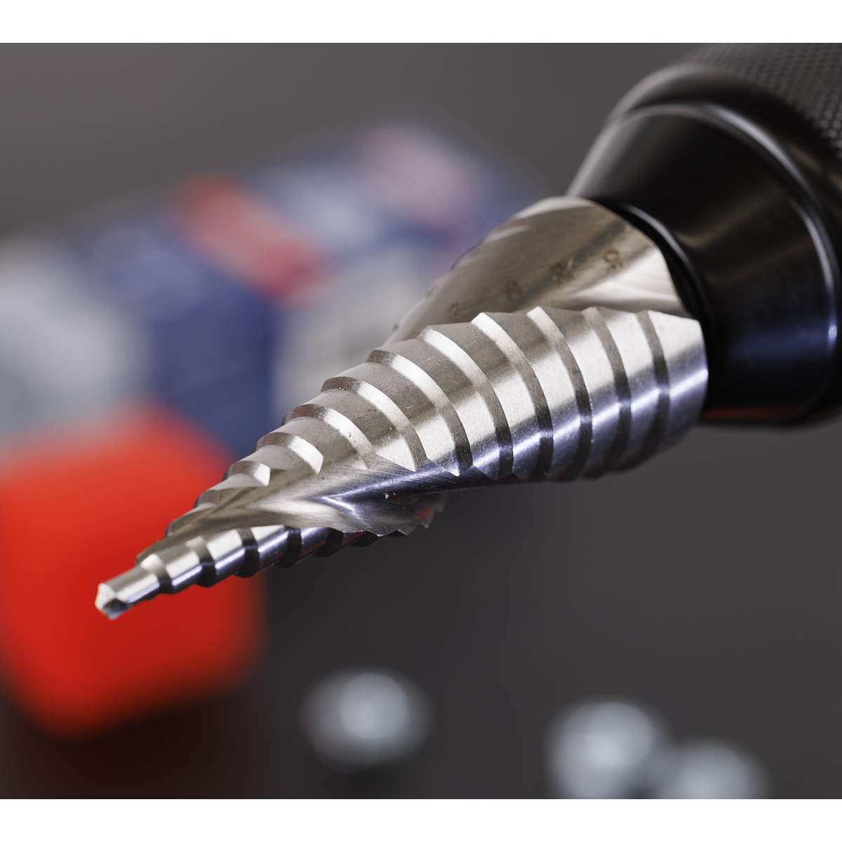 32.98 2025-11-09High-speed HSS 4341 spiral flute step drill. Double spiral flutes for efficient swarf clearance. Allows clog-free precision drilling. Supplied in plastic storage case.