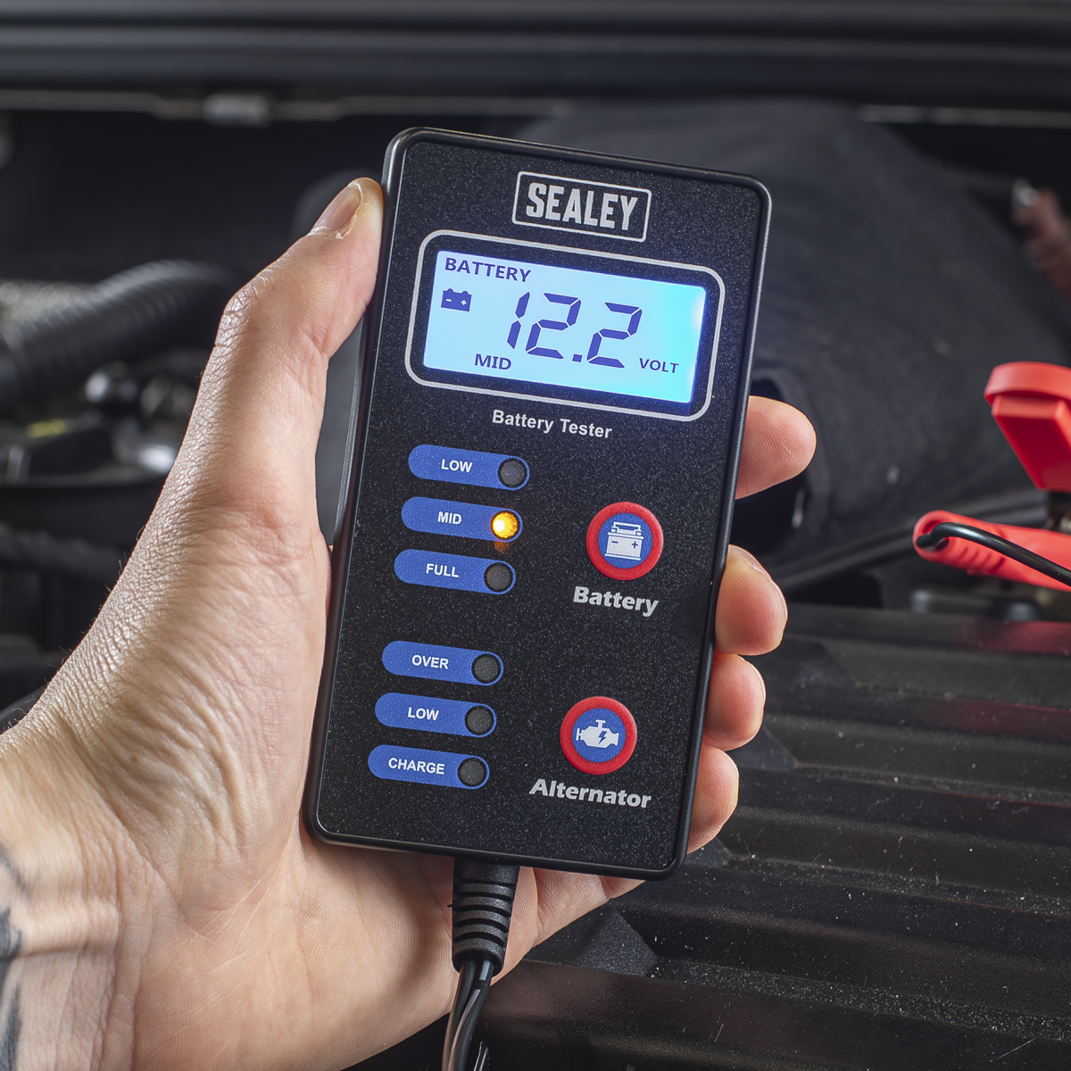 22.70 2025-12-22Backlit LCD screen verifies battery and alternator condition. Colour-coded LED indicators for battery and alternator condition. Powered via 12V DC using crocodile clips or auxiliary port. Compact lightweight design ideal for mobile use. Crocodile clip cable measures 650mm. Auxiliary port cable measures 620mm. Suitable for 12V lead acid batteries.