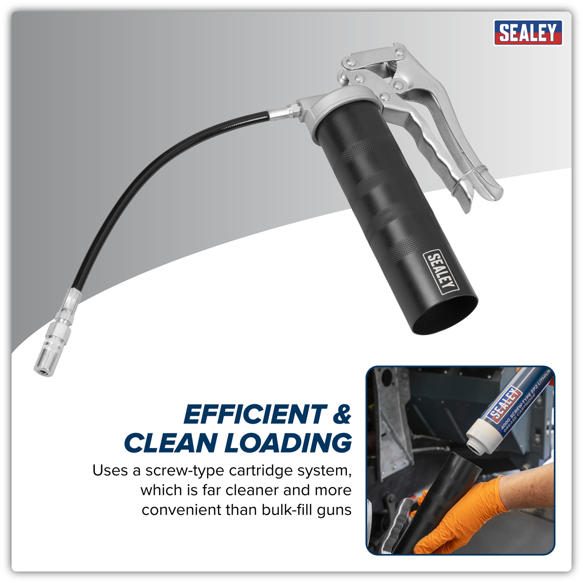 31.70 2026-04-29Featuring screw-type connection to be used with Model No. SCS107 400g Screw-Type Grease Cartridge. Short canister allows it to remain screwed in during cartridge installation. Vacuum suction to ensure full utilisation of grease cartridge and eliminates priming issues associated with conventional grease guns. Manufactured using high grade aluminium die-cast head and steel and supplied with flexible extension tube and coupler.