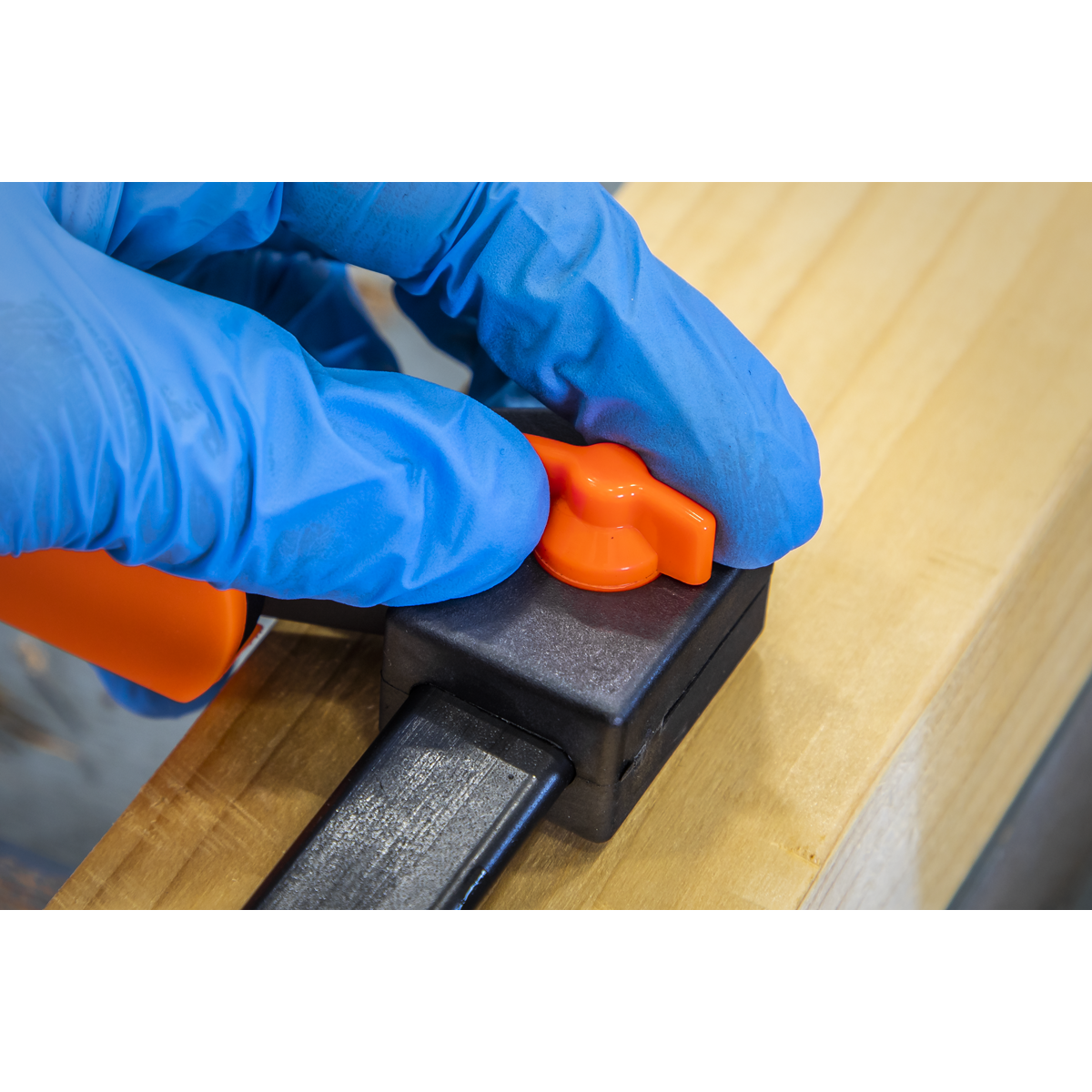 40.28 2026-01-03Ratchet action clamps with comfort grip handle and quick release button for fast adjustment. Fixed jaw may be reversed to allow use as a spreader. Resilient clamping faces and 63mm throat.