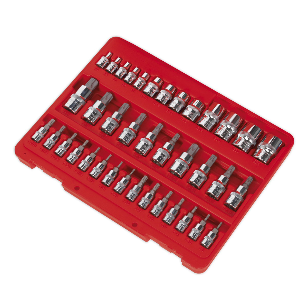 52.18 2025-12-22Drop-forged Chrome Vanadium steel sockets with S2 steel TRX-Star* bits. Sockets heat treated and chrome plated for resistance to corrosion. Fully polished mirror finish with knurled ring to assist gripping with oily fingers. Supplied in storage case.
