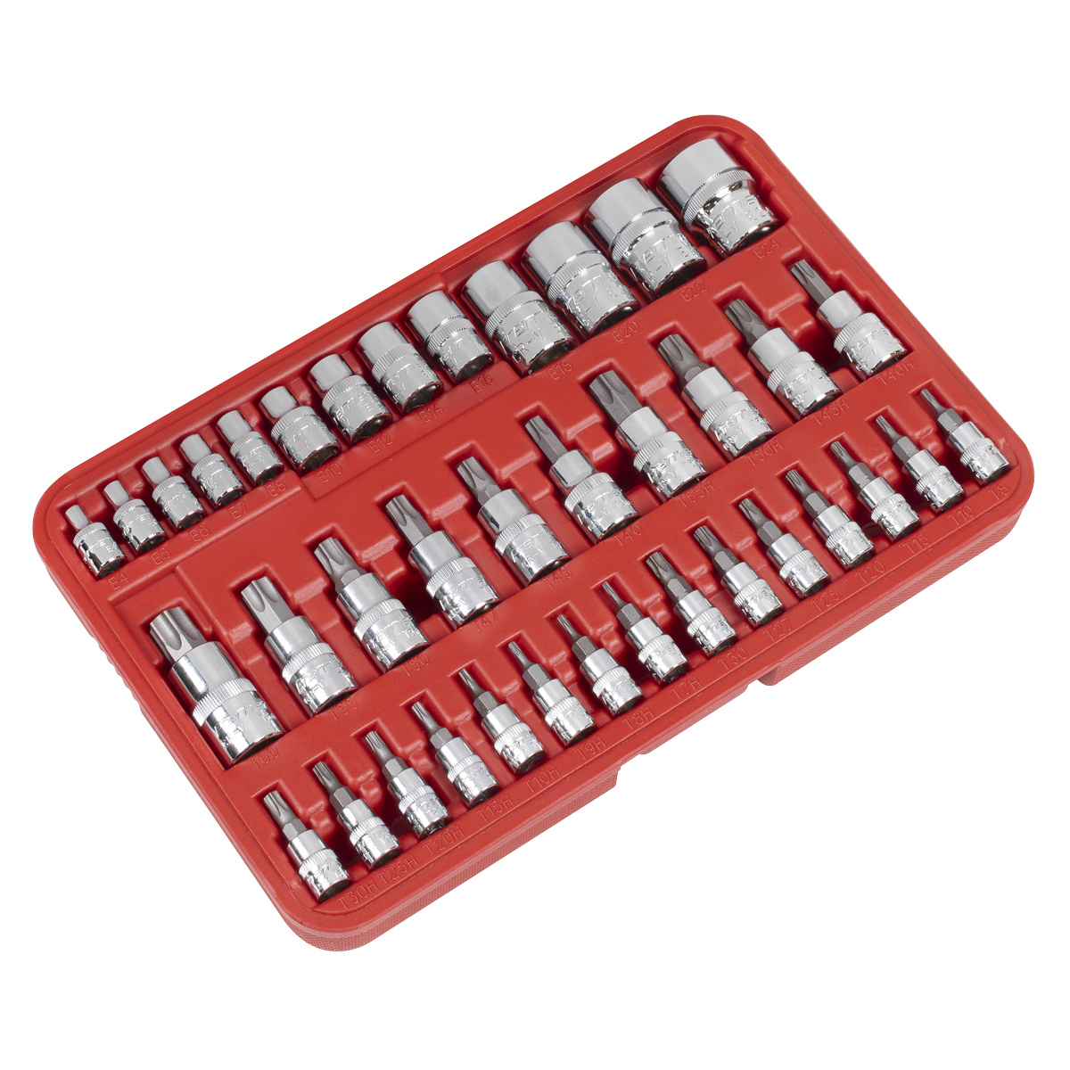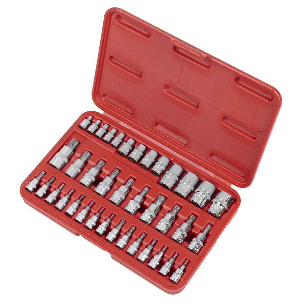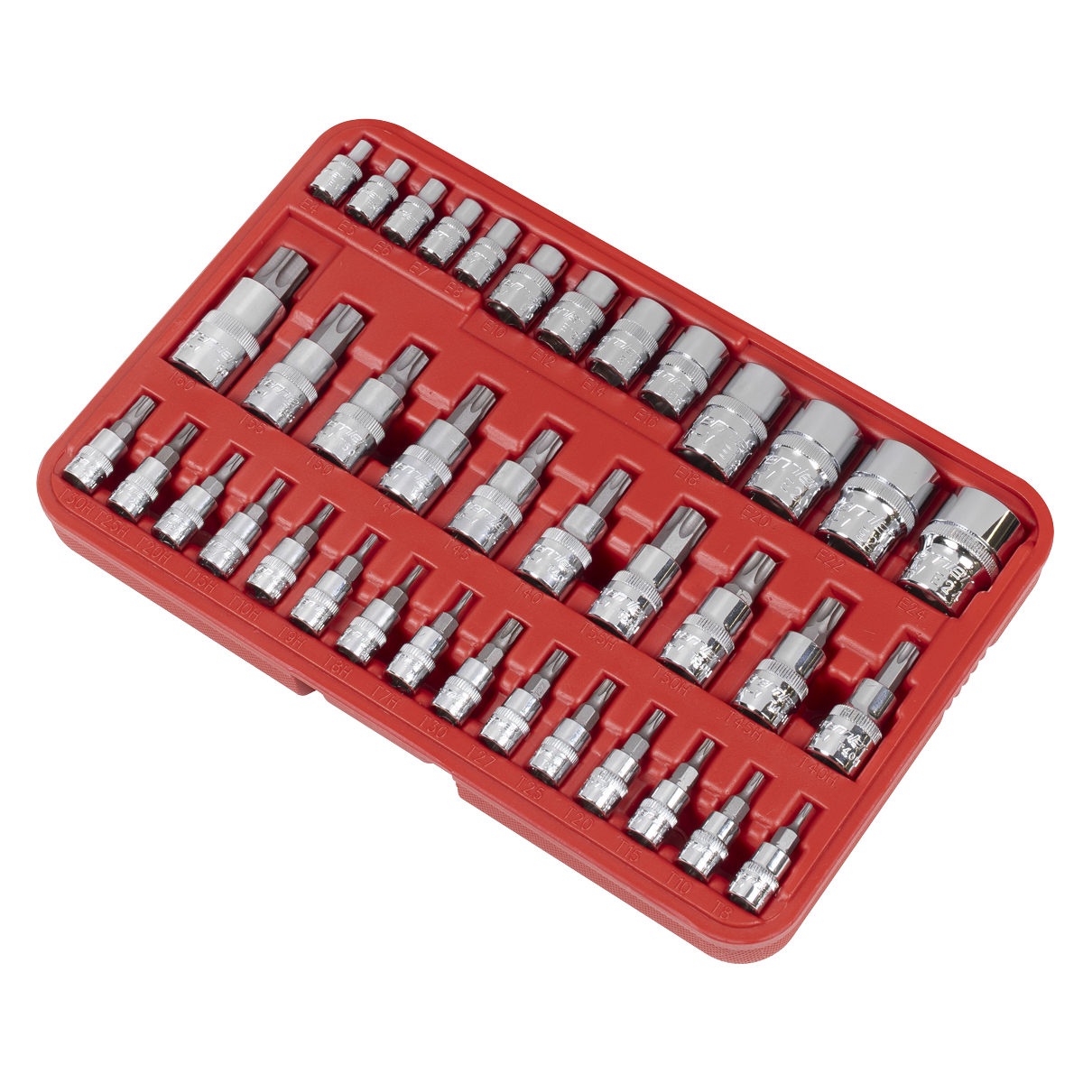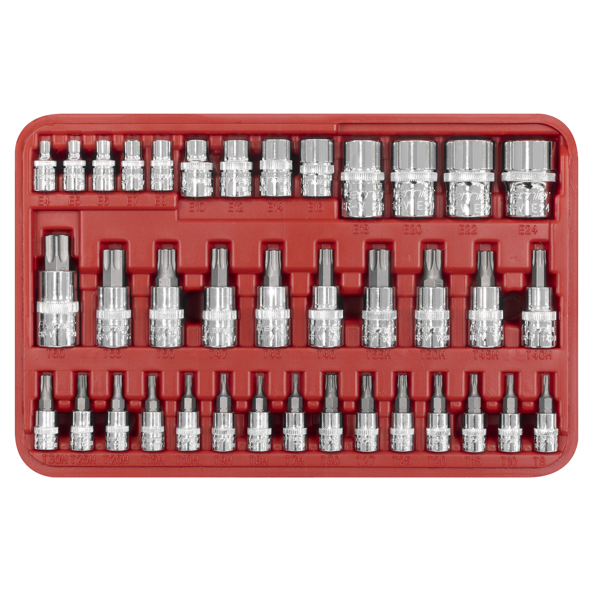 52.18 2026-02-26Drop-forged Chrome Vanadium steel sockets with S2 steel TRX-Star* bits. Sockets heat treated and chrome plated for resistance to corrosion. Fully polished mirror finish with knurled ring to assist gripping with oily fingers. Supplied in storage case.