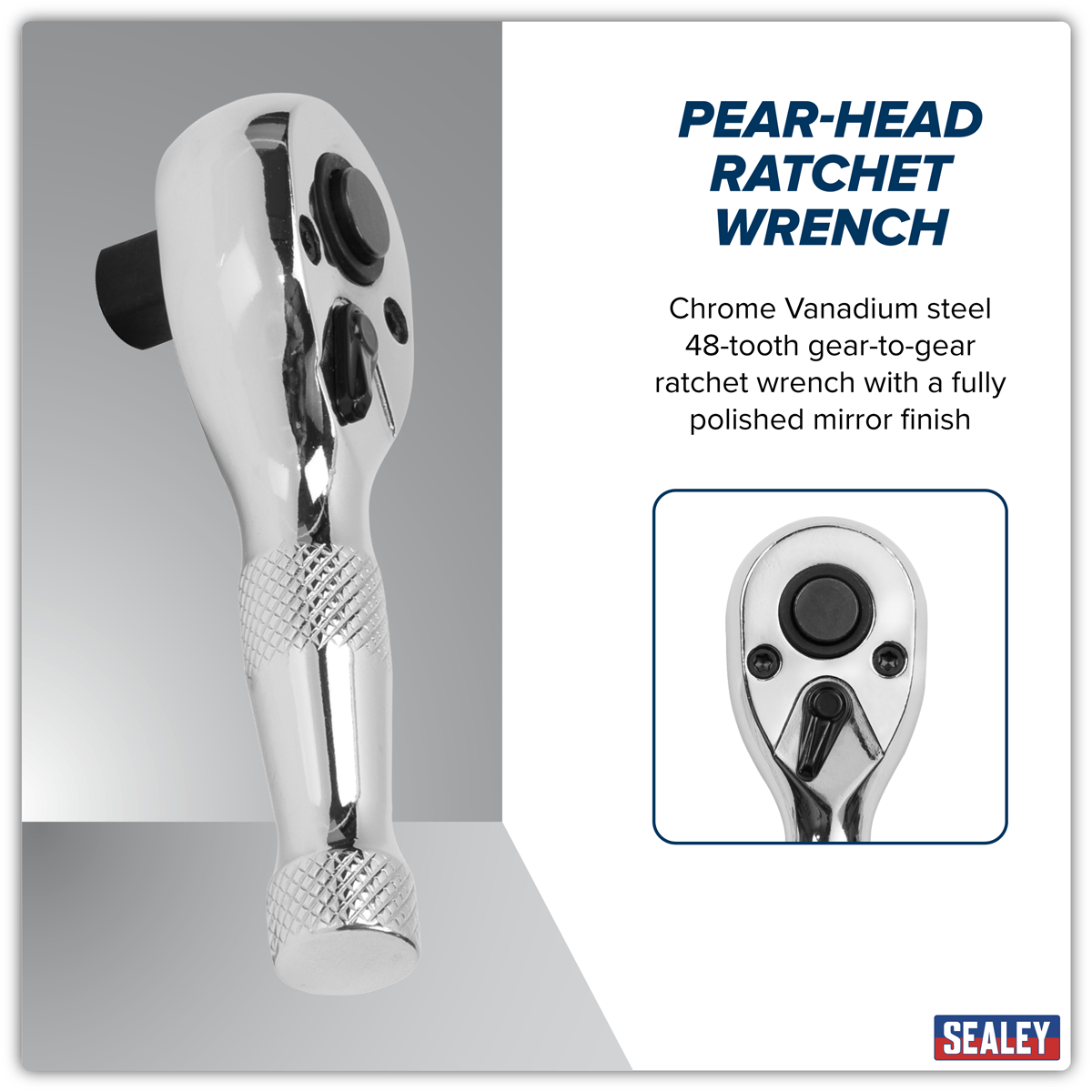 23.98 2026-05-01Chrome Vanadium steel 72-tooth gear-to-gear ratchet wrench with a fully polished mirror finish. Contoured handle, for comfort and grip. Pear-head with flip reverse and quick release. Stubby configuration gives improved access in confined spaces.