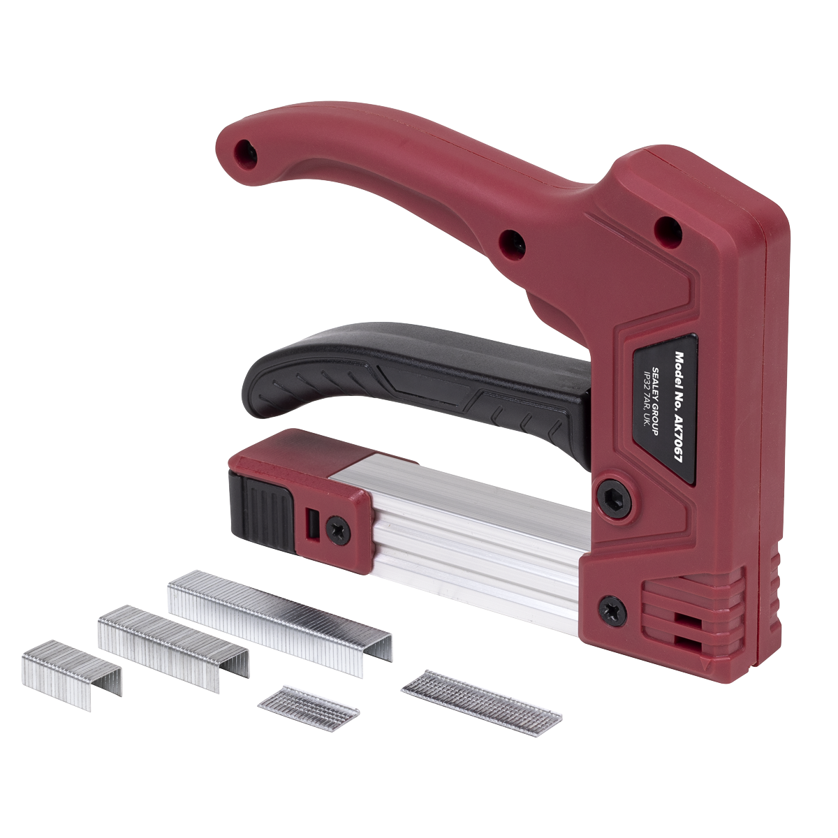 17.96 2025-11-012-in-1 staple and nail gun. Heavy-duty reinforced heat treated carbon steel handle with a PVC casing. Sliding magazine for easy clearance of any blockages. Suitable for a wide range of applications. Supplied with a starter pack of 150 staples and nails.