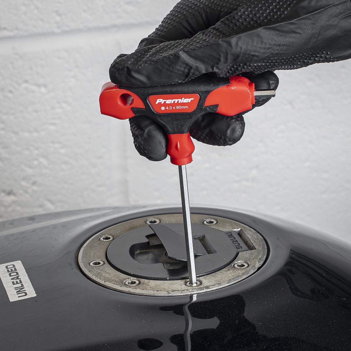 33.02 2025-12-01Hardened and tempered Chrome Vanadium steel shafts with a fully polished satin finish. Tough, composite handle with rubberised comfort grip. Long shaft has ball-end, allowing fixing to be driven at up to 30° from its axis. Short element is standard hex. Includes hanging holes and storage stand.