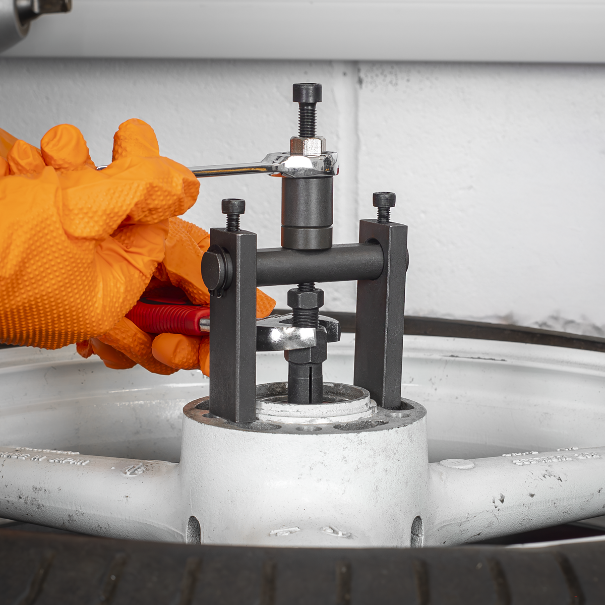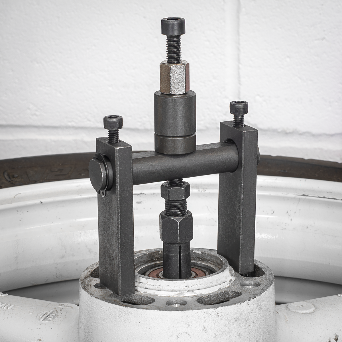 Screw-type bridge extractor set. The thin tapered lips on the collets secure a positive grip on the curved surface of the internal bearing bore. Gently removes blind bearings where the use of a slide hammer may damage the surrounding material. Bearing extractor collets with internal capacity from 8 to 27mm.