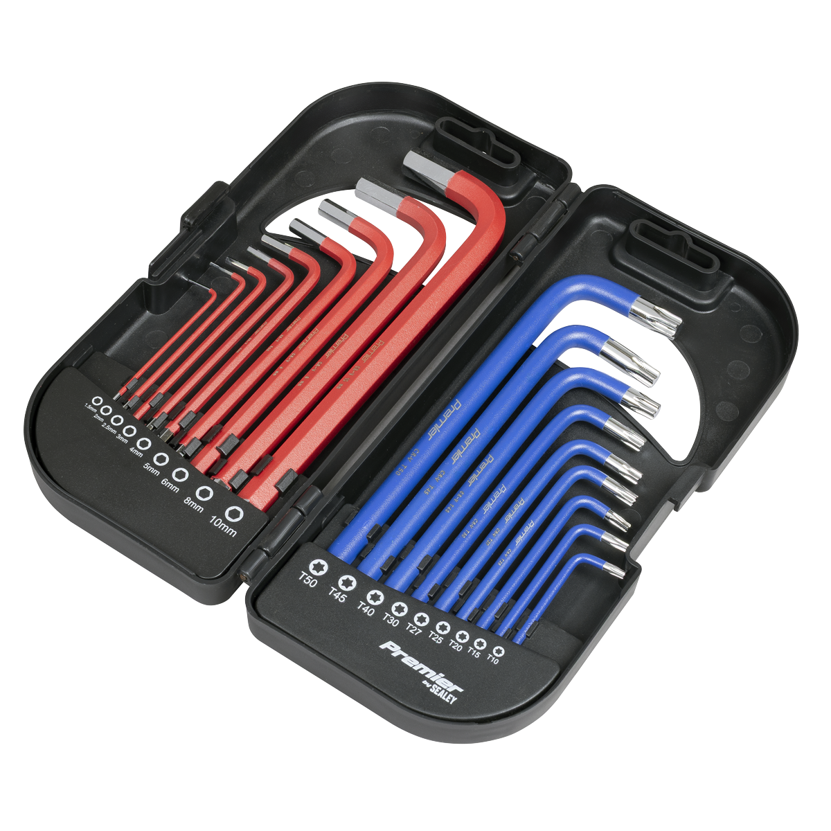 34.78 2026-01-31Manufactured from heat treated and hardened Chrome Vanadium steel with a fully polished finish. Ball-end hex from 1.5 to 10mm with hex short element and TRX-Star* from T10 to T50 with security short element. Keys range in length from 75mm to 180mm and feature an anti-slip coating for comfort and control. Supplied in composite case for safe storage and quick key selection.