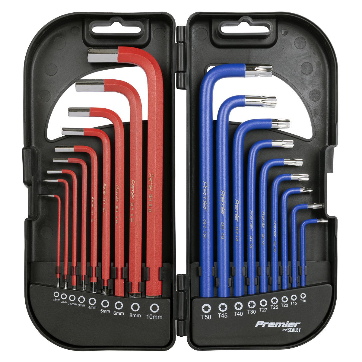 34.78 2026-03-15Manufactured from heat treated and hardened Chrome Vanadium steel with a fully polished finish. Ball-end hex from 1.5 to 10mm with hex short element and TRX-Star* from T10 to T50 with security short element. Keys range in length from 75mm to 180mm and feature an anti-slip coating for comfort and control. Supplied in composite case for safe storage and quick key selection.