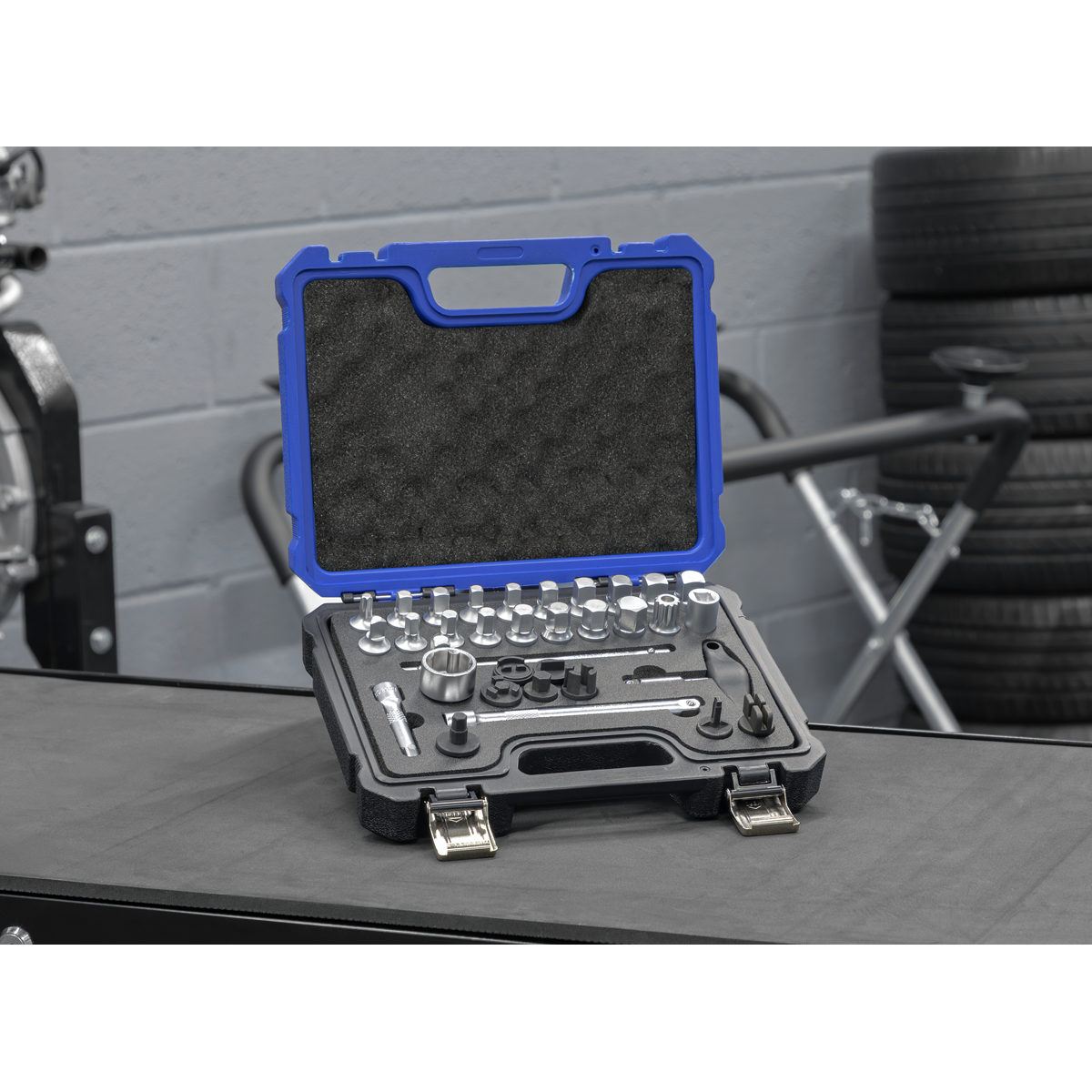 52.16 2026-05-06Suitable for removing oil drain plugs from engines, gearboxes and back axles. Features T-handle oil drain plug key for quick operation. Manufactured from heat treated and hardened steel. Comprehensive kit covering a variety of vehicles. Supplied in storage case which features an EVA inlay with a hard, easy to wipe clean top surface for practical workshop use.