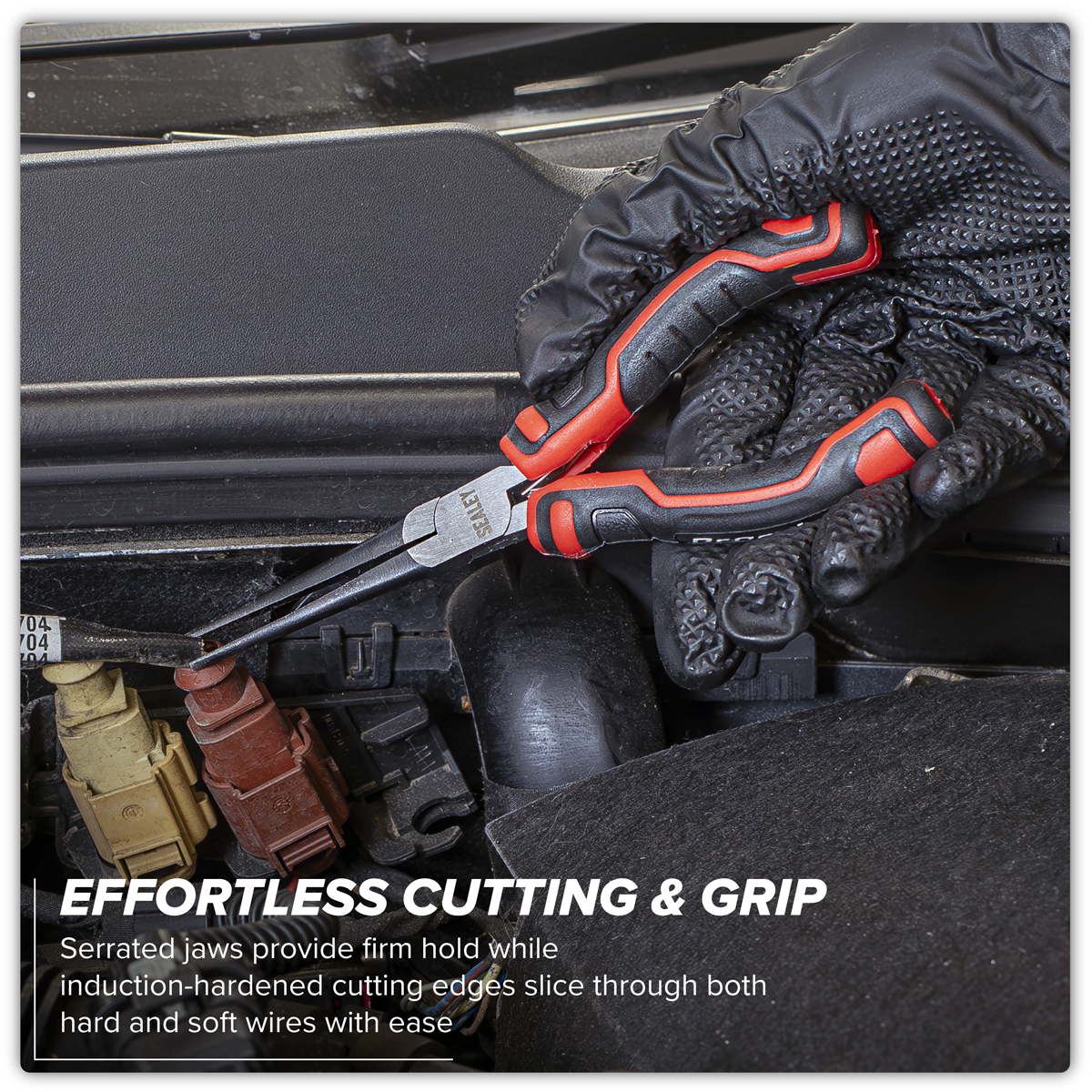 26.38 2026-04-24Manufactured from hardened and tempered drop-forged Chrome Vanadium steel. Finely ground polished heads. Serrated jaws and precision ground cutting edges, induction-hardened 55-65 HRC for cutting hard and soft wires. Dual material comfort grip handles.